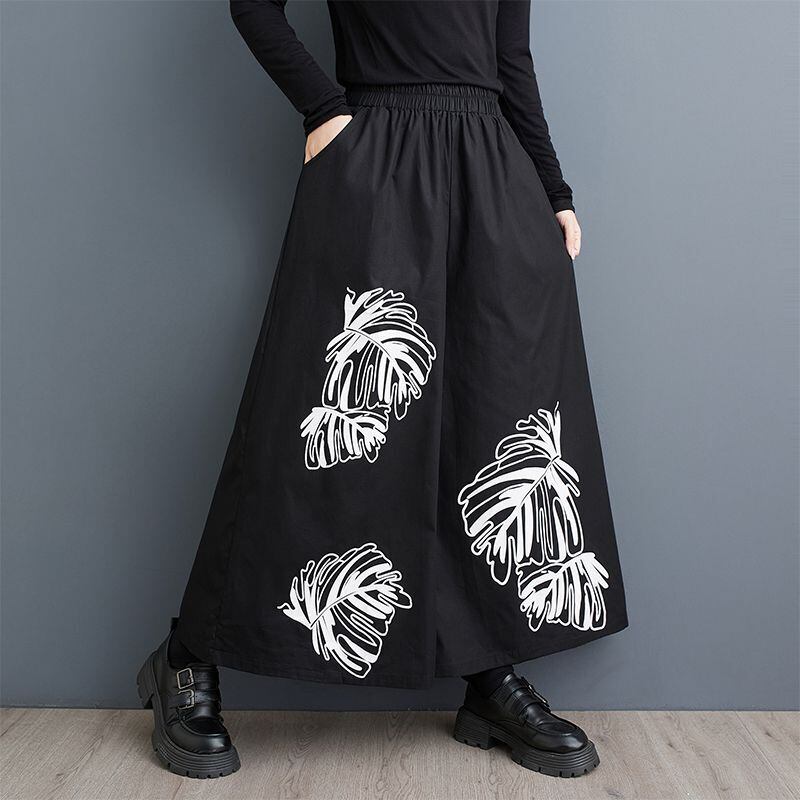 シンプルなブラックの生地に、白く際立つリーフ柄がアクセント。