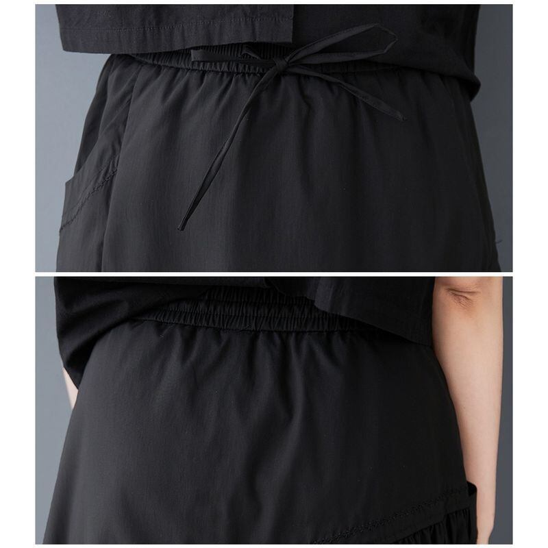 歩くたびに揺れるアシンメトリーな裾が、軽やかでスタイリッシュな雰囲気をプラス。