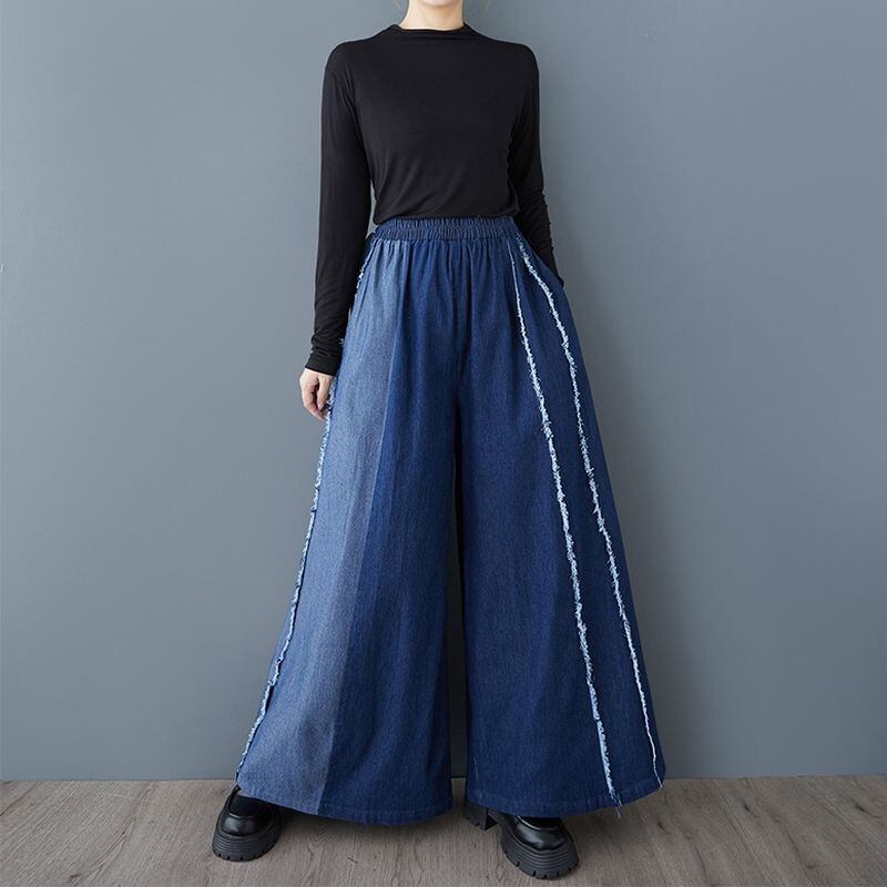ワイドレッグ フリンジ デニムパンツ 00166