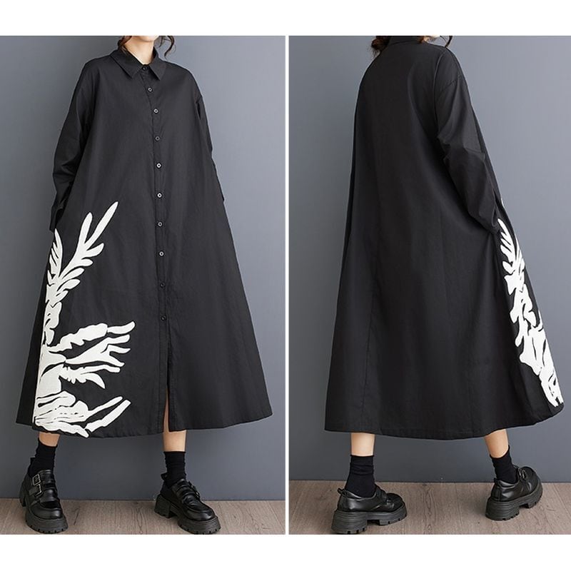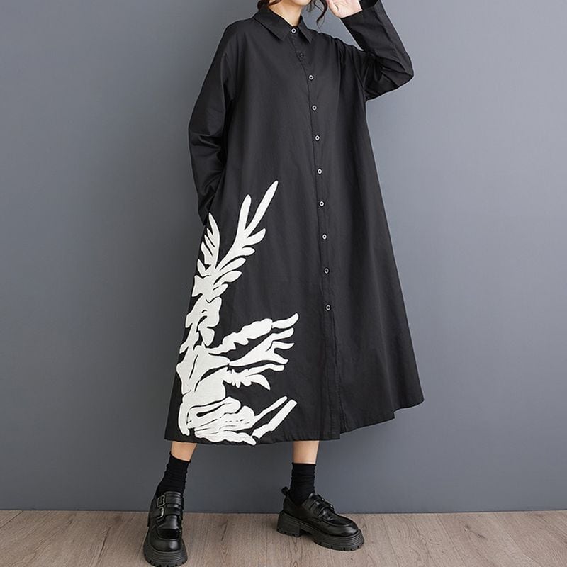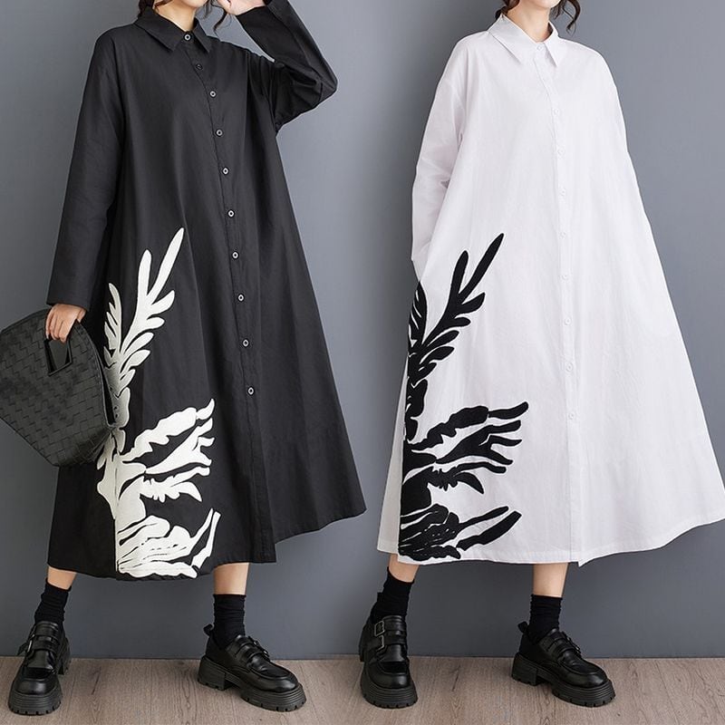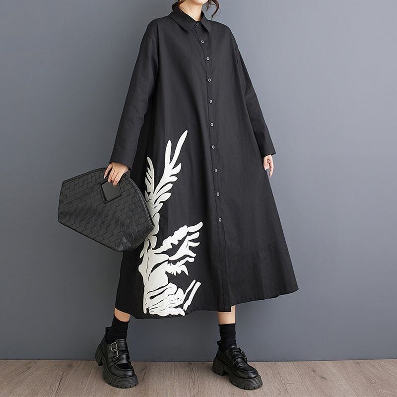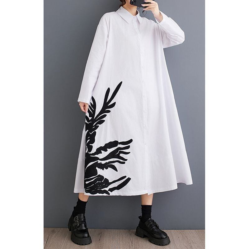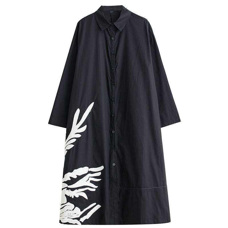 一枚で様になる、抽象柄のAラインシャツワンピース。