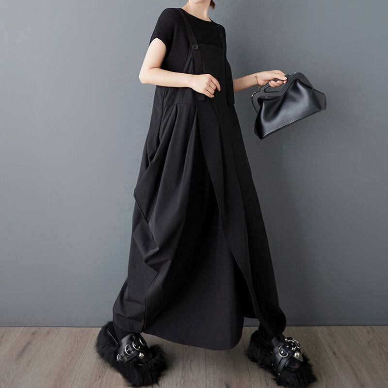 ドレープデザイン ワイドレッグサロペット 00194