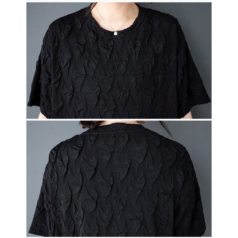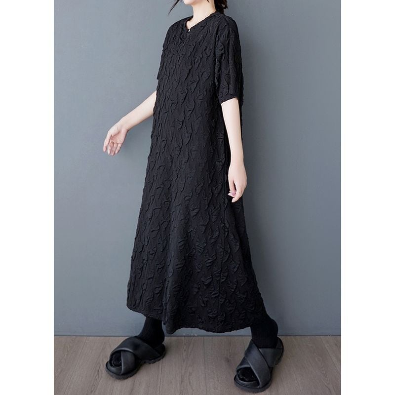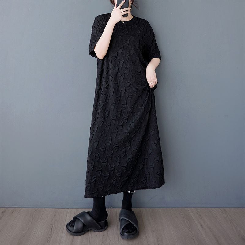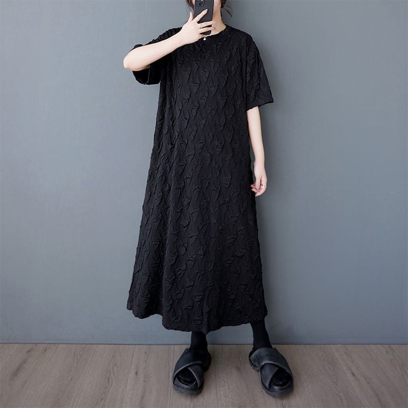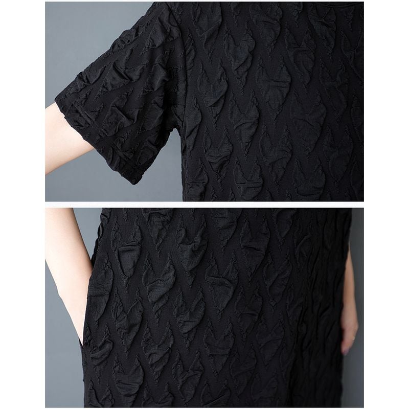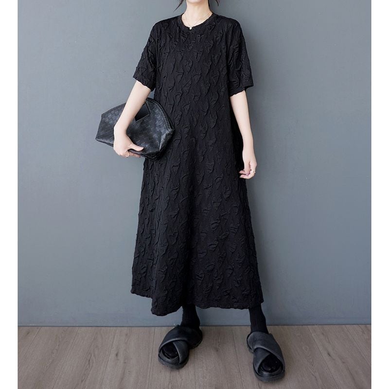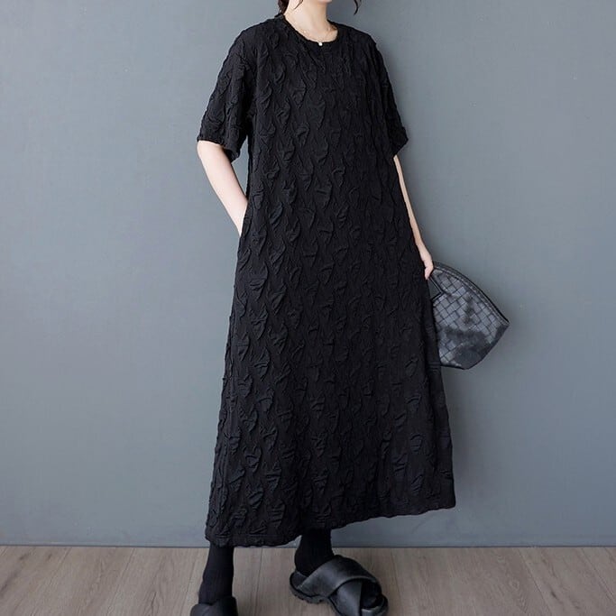 テクスチャード加工が施された半袖ワンピースは、着心地の良さと上品さを兼ね備えたアイテムです。