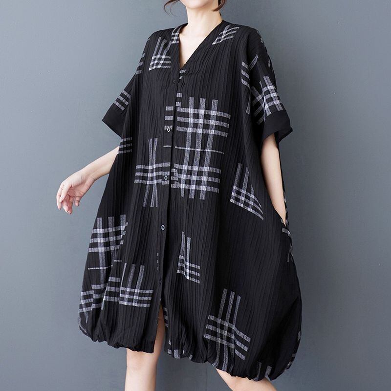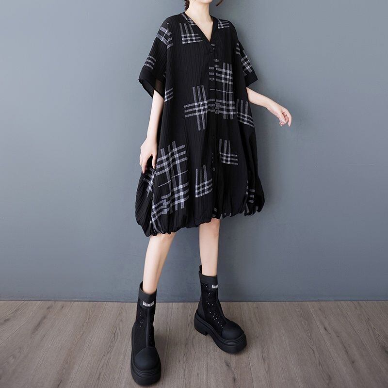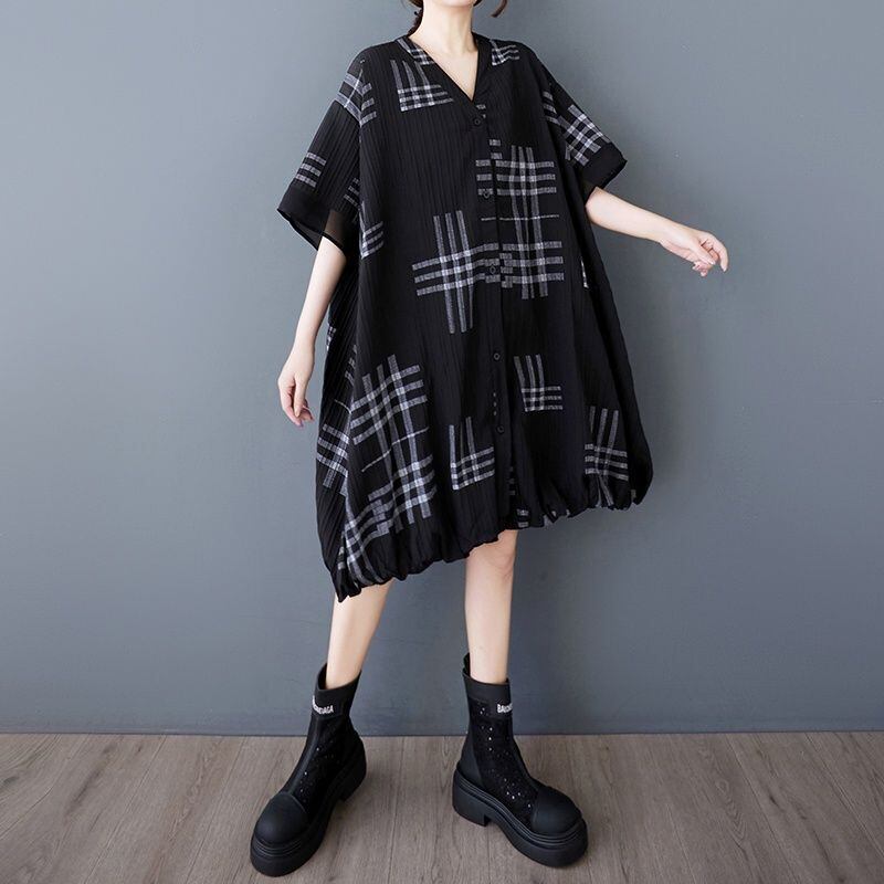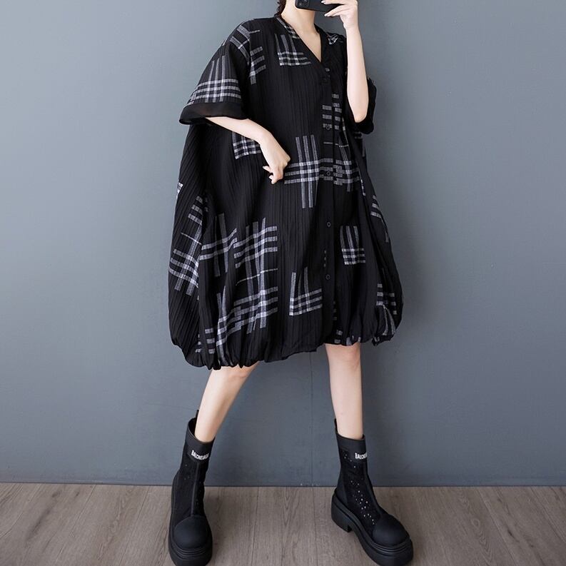 チェック柄とバルーンシルエットが魅力的なオーバーサイズシャツ。
