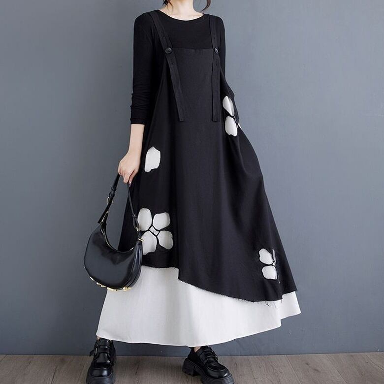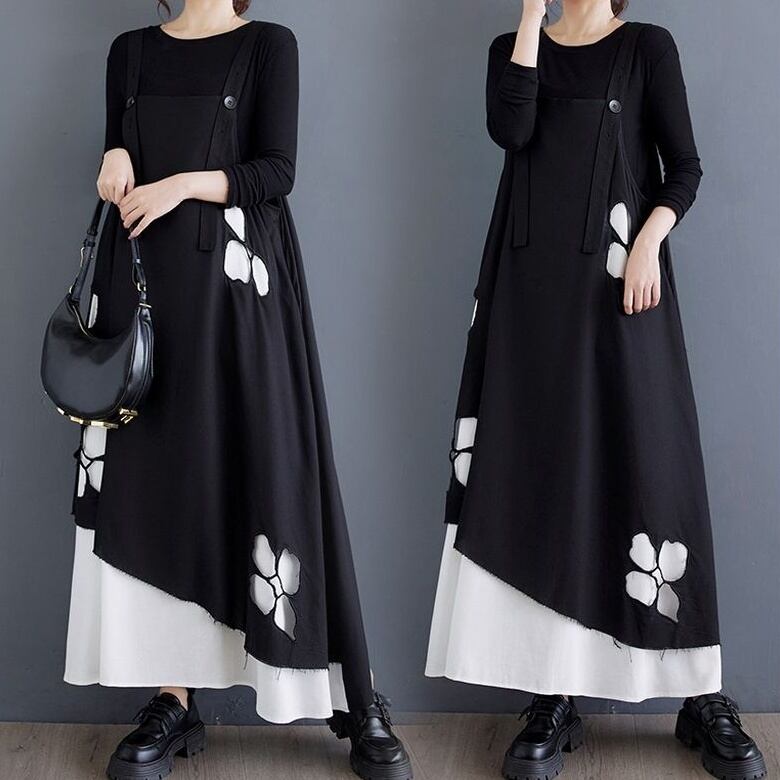 裾の切り替えと、さりげなく施された花柄のカットワークが、洗練された印象を与えます。