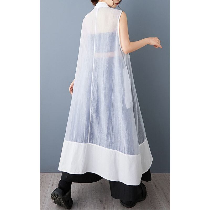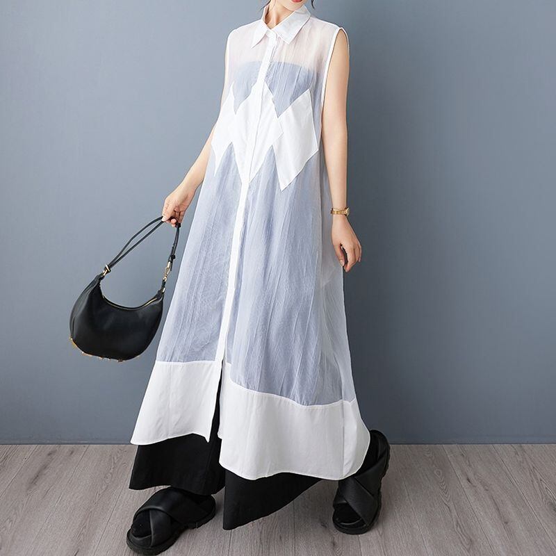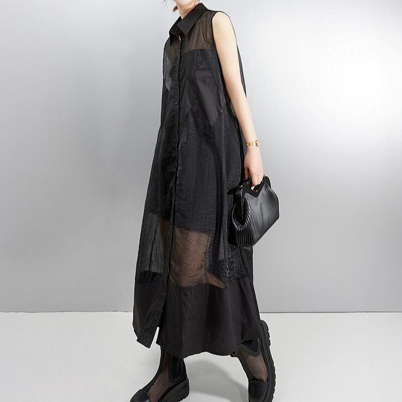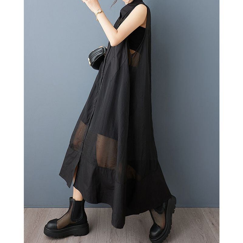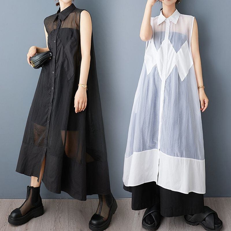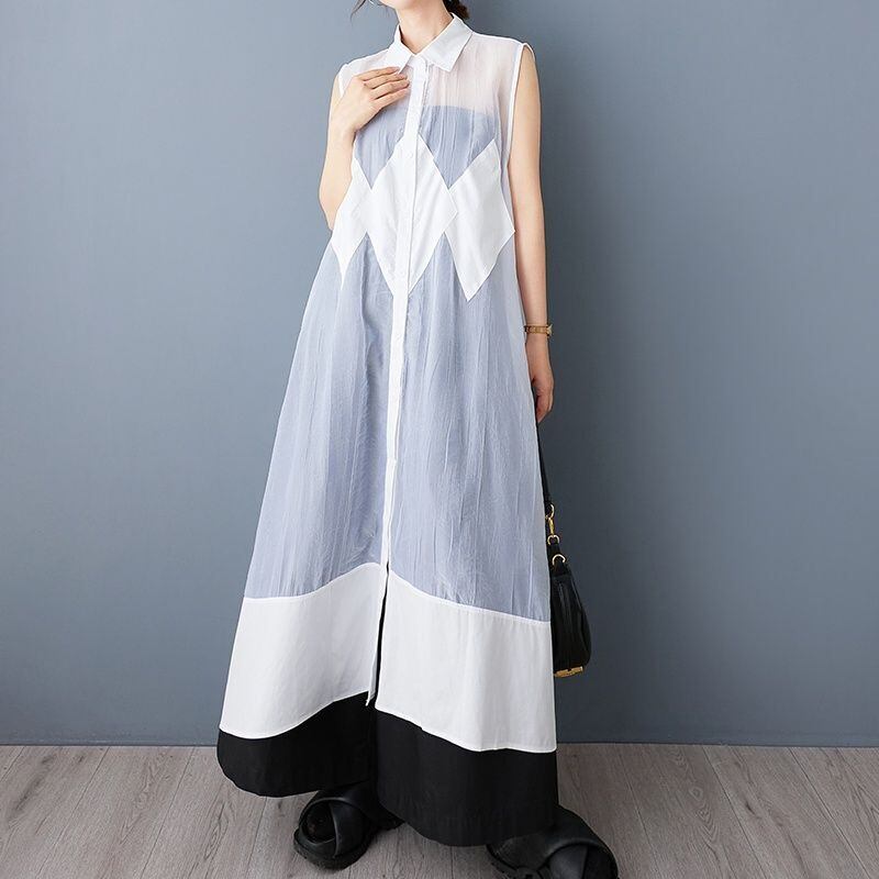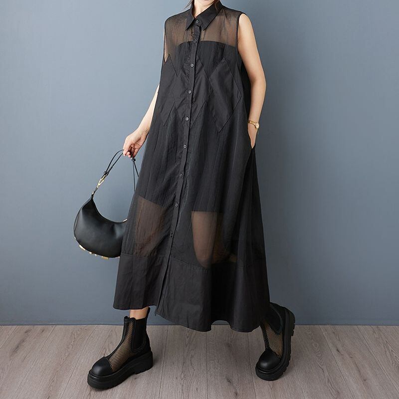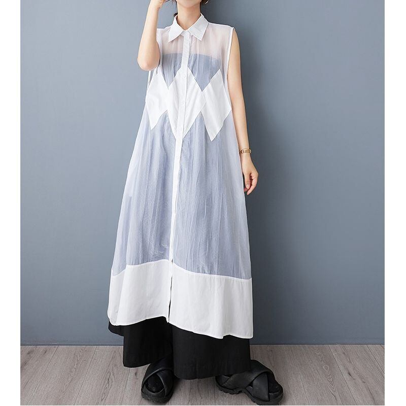 シアー素材 切替 ロングシャツワンピース 30083
