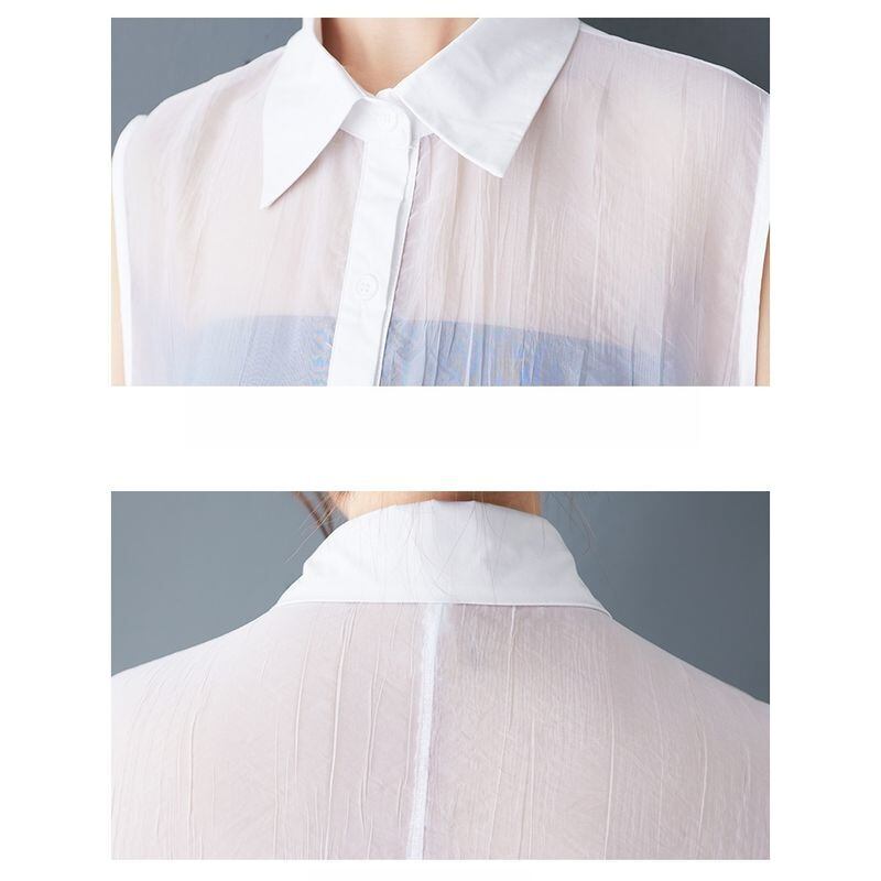 シアー素材とソリッド素材の切替デザインが、シンプルながらも洗練された印象を与えます。