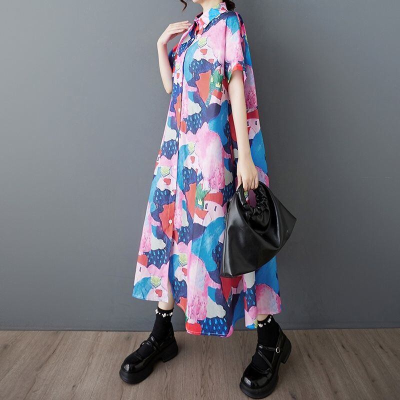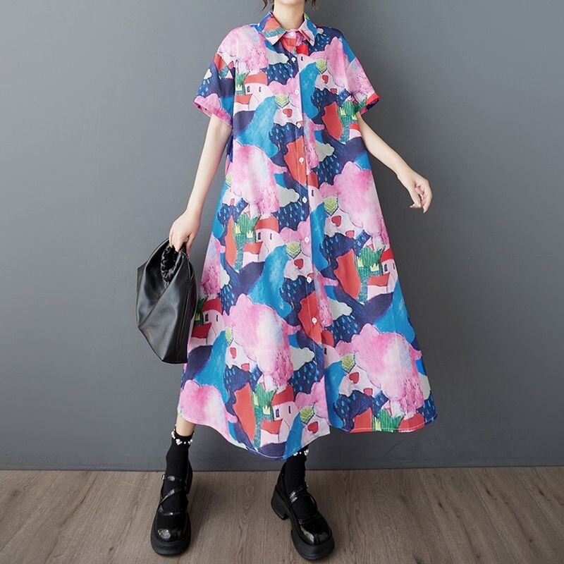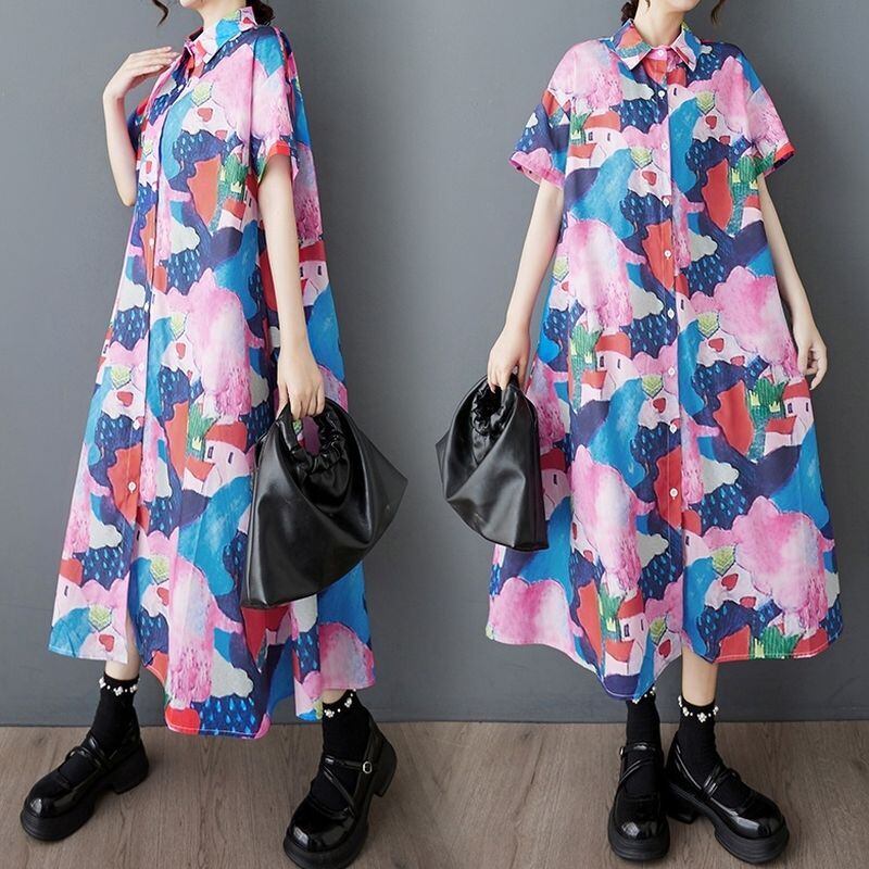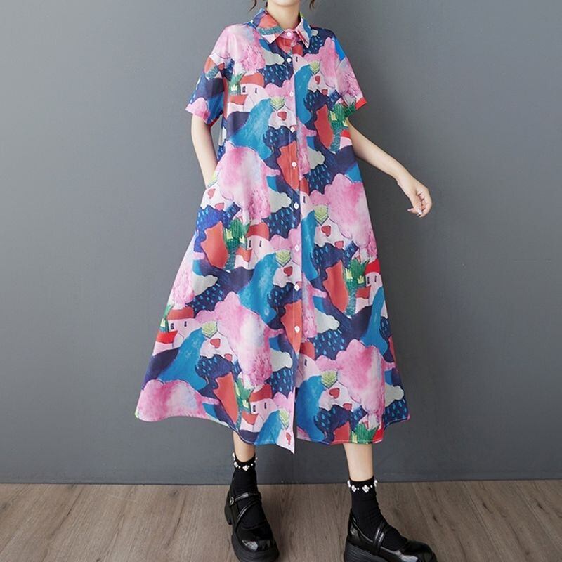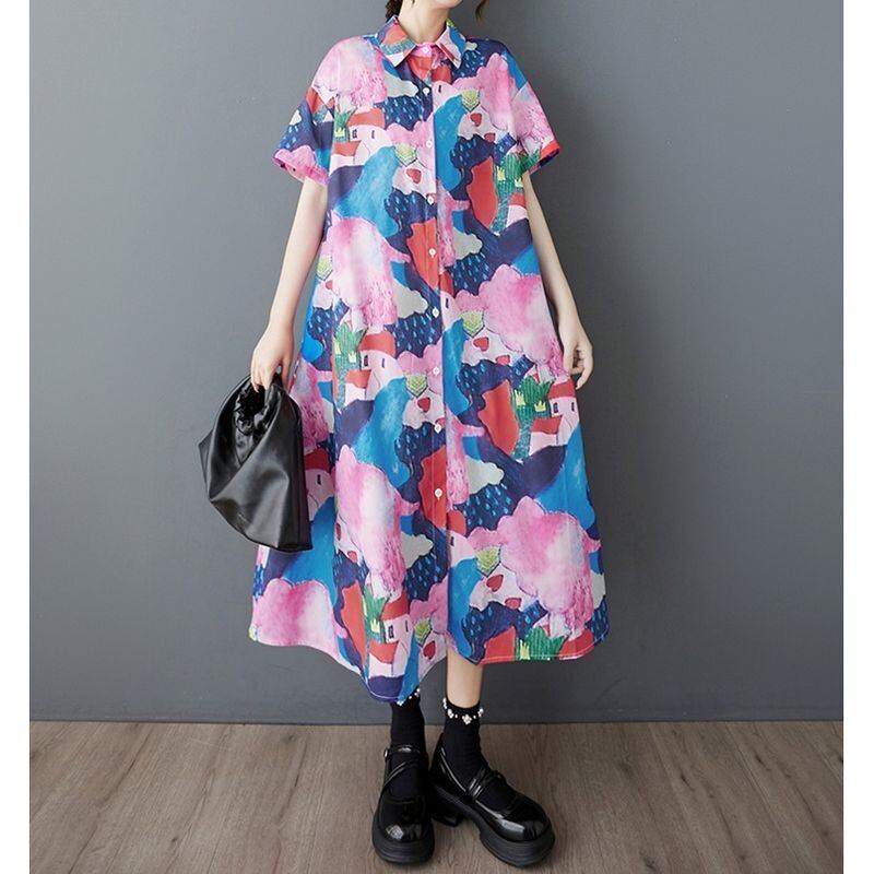 ボタン付きシャツワンピースのデザインは、着脱が簡単で着心地も快適です。