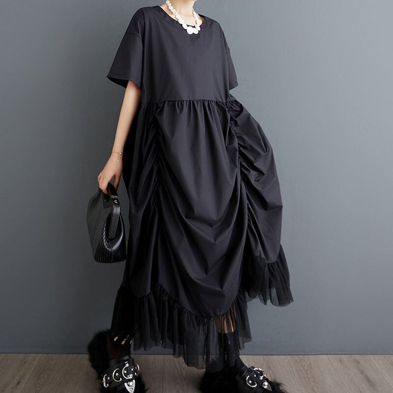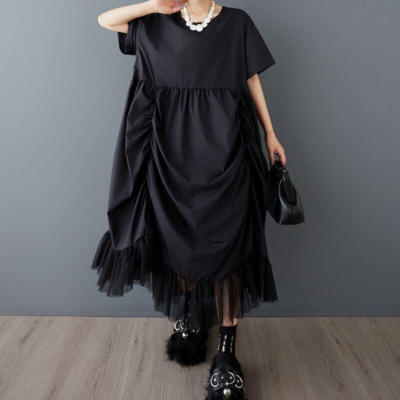 ドレープデザイン ブラック ワンピース 30098