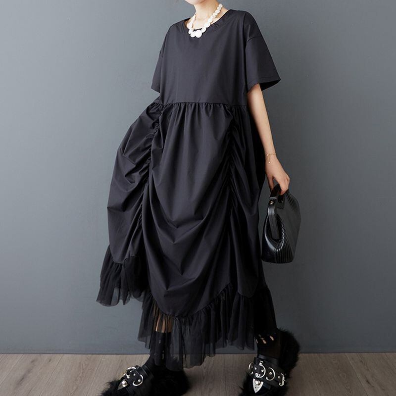 ドラマティックなドレープが魅力のブラックワンピース。