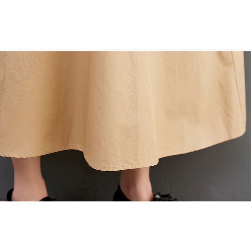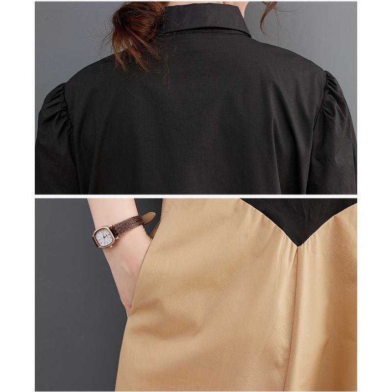 襟付き×ボタン開閉のクラシカルなシャツワンピースながら、フレアシルエットでほどよくフェミニンな印象に。