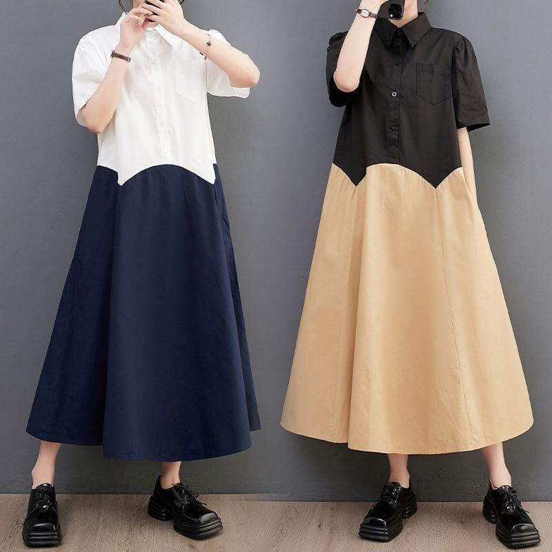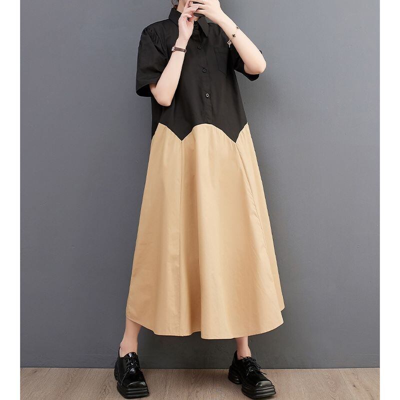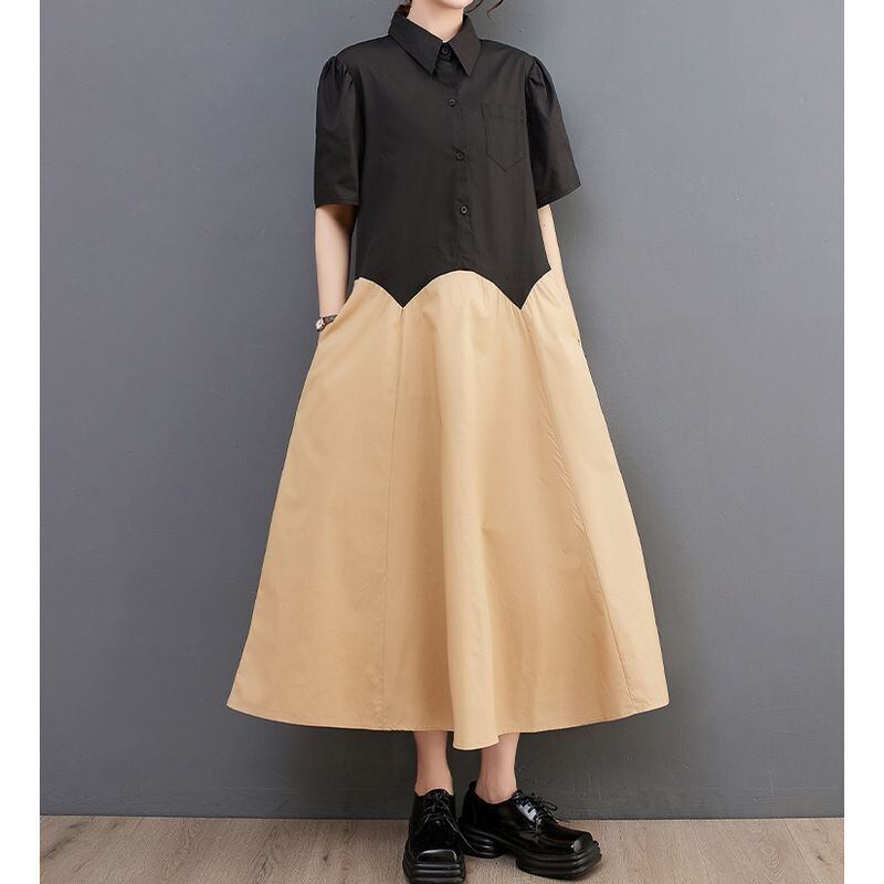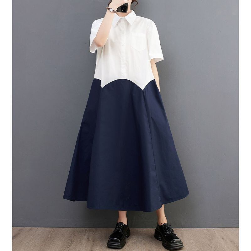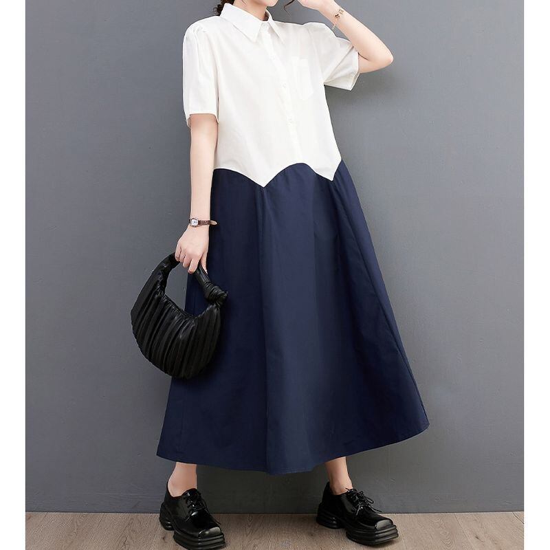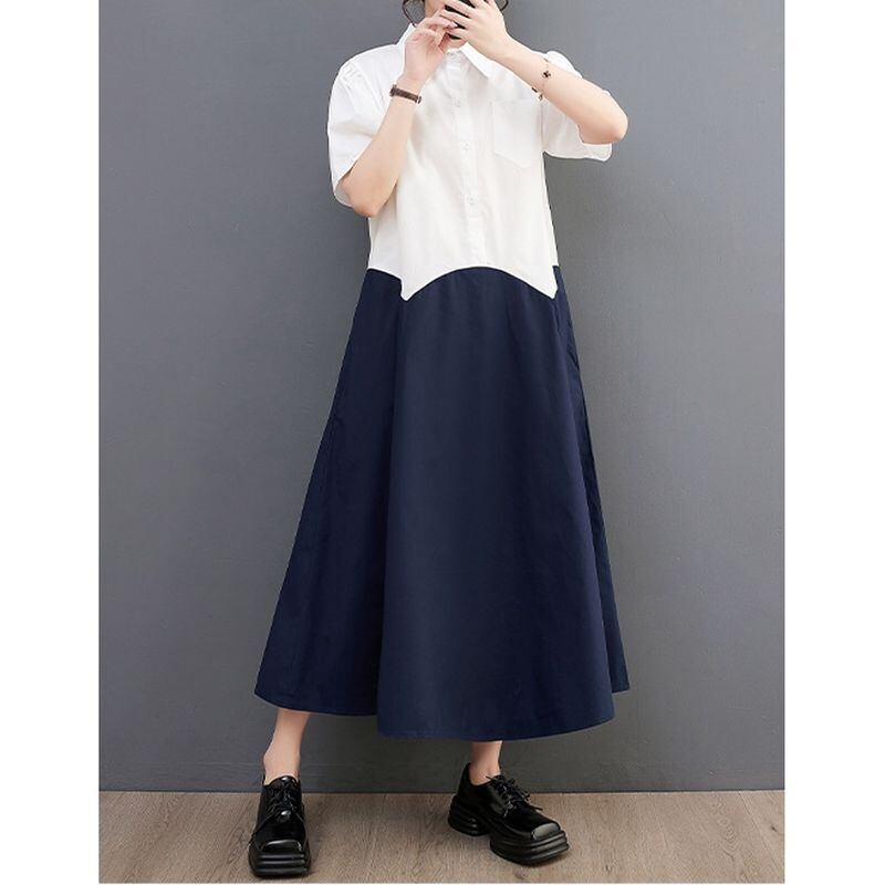 上半身とスカート部分で異なるカラーを配したバイカラーデザインが印象的。