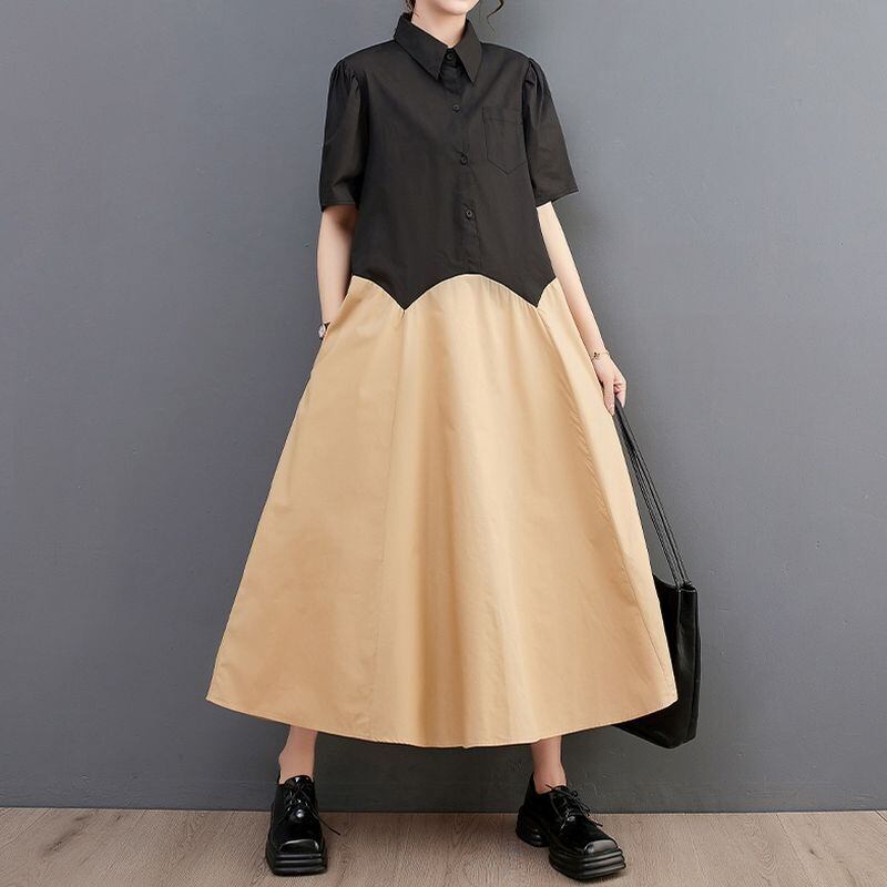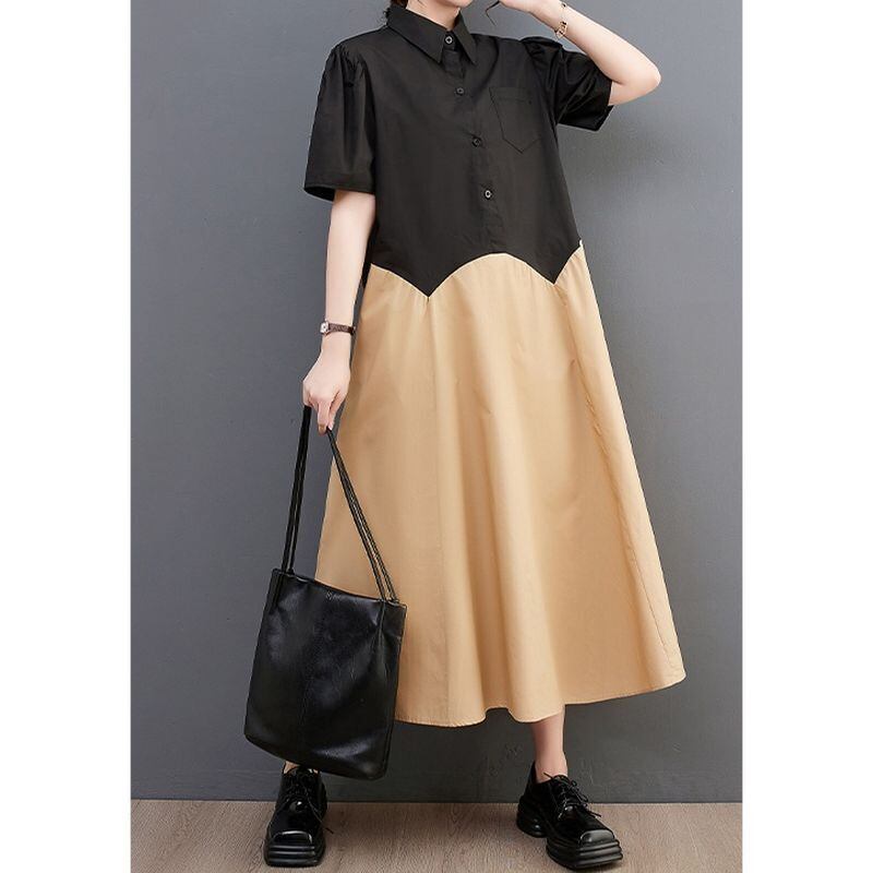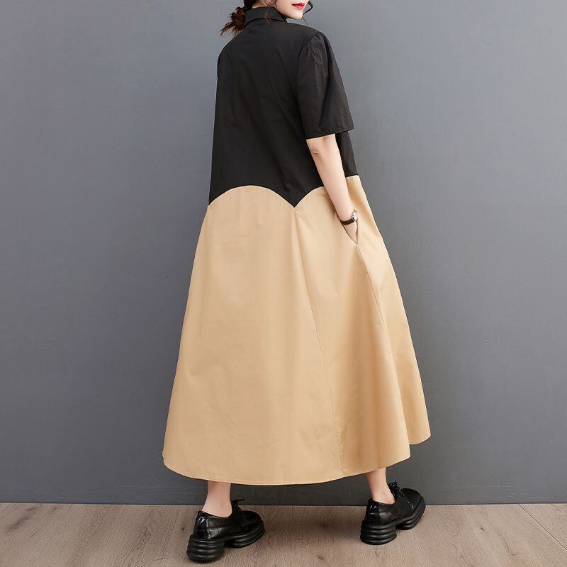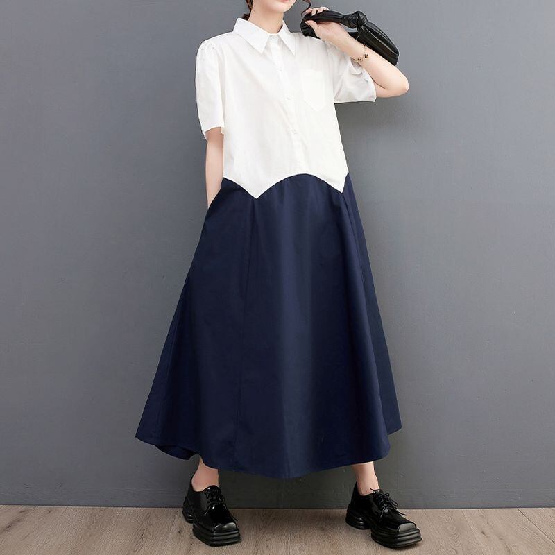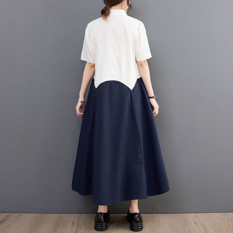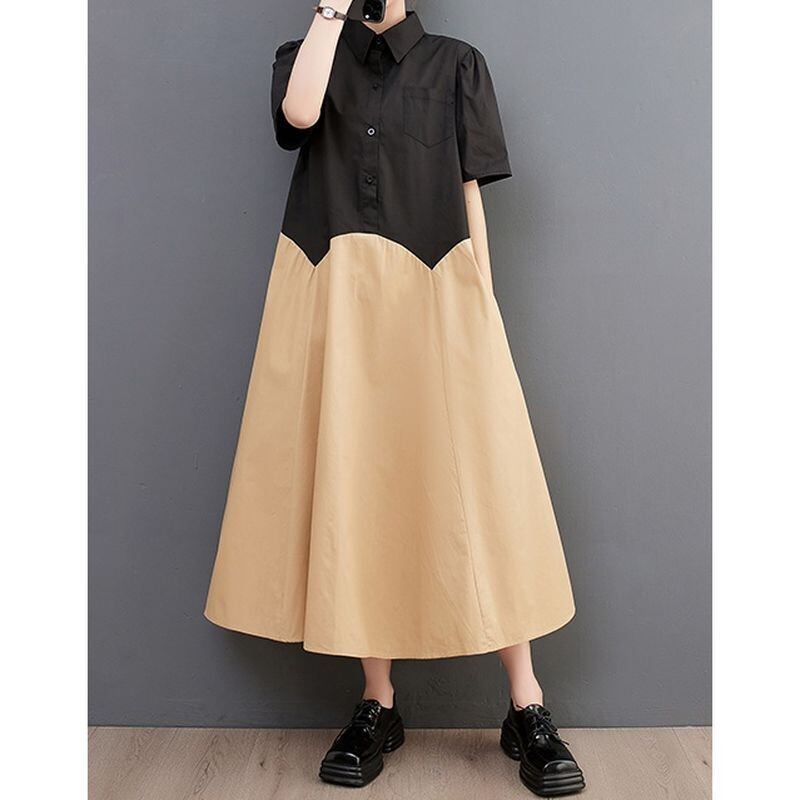 上半身とスカート部分で異なるカラーを配したバイカラーデザインが印象的。