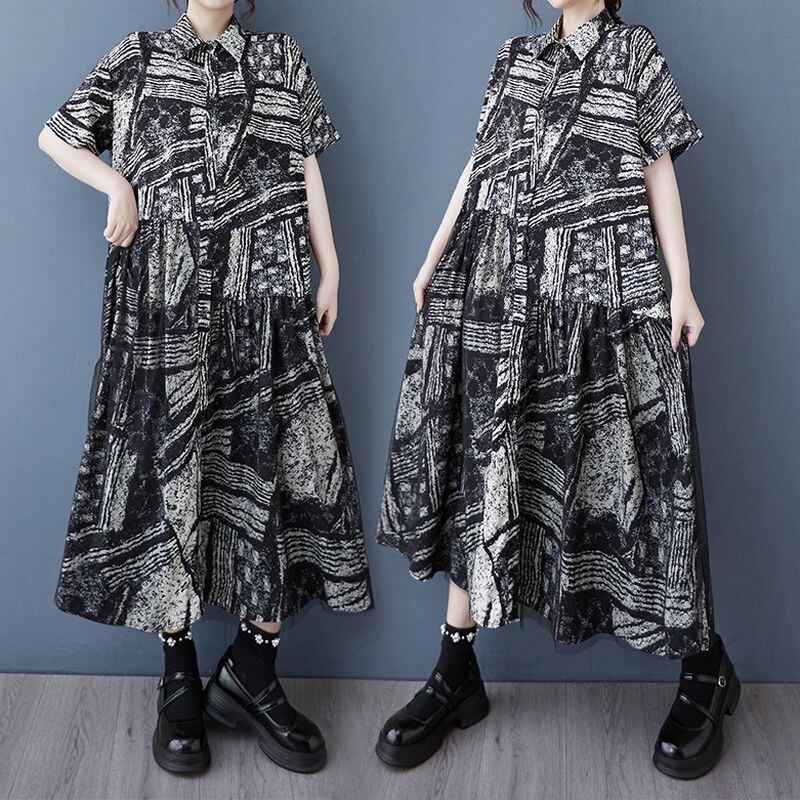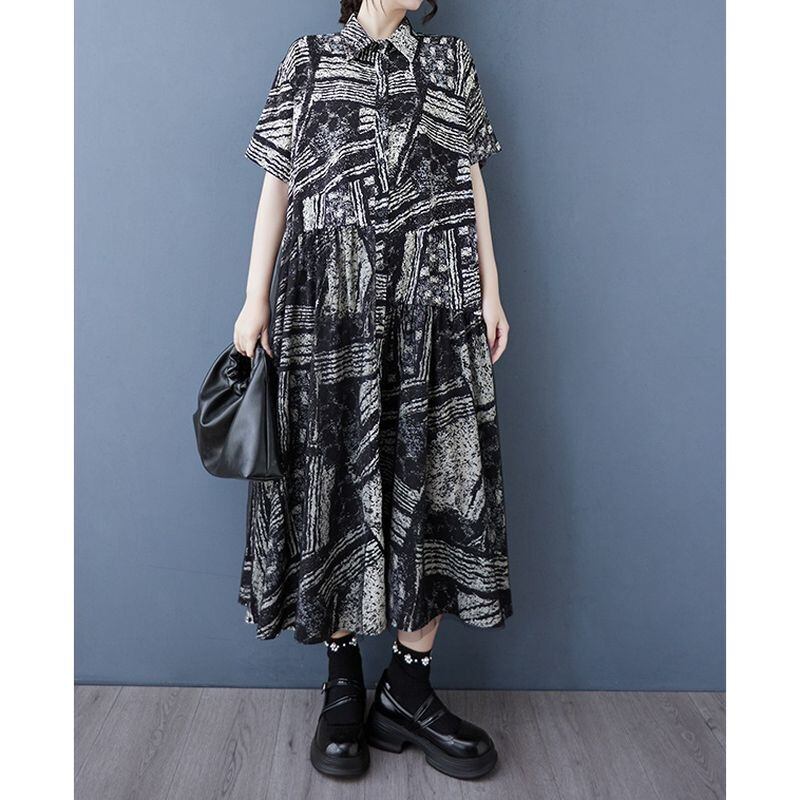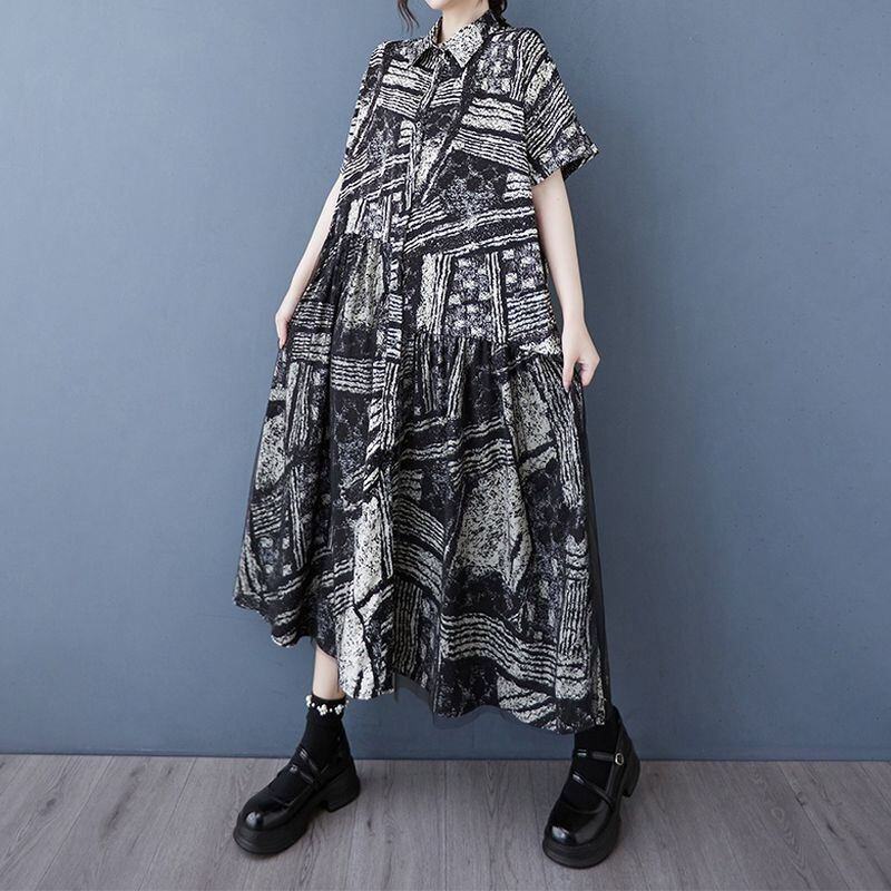 黒と白の大胆なプリントが、モダンでアーティスティックな印象を演出。
