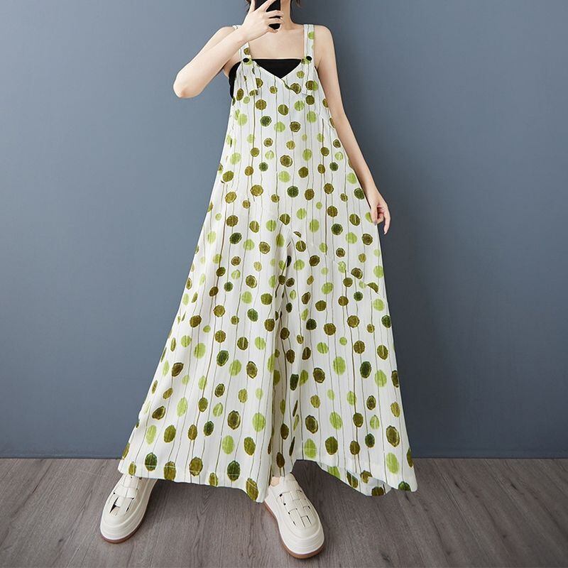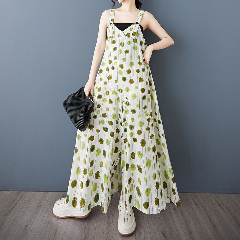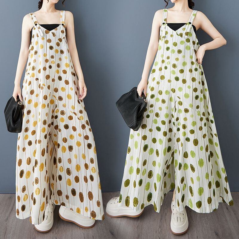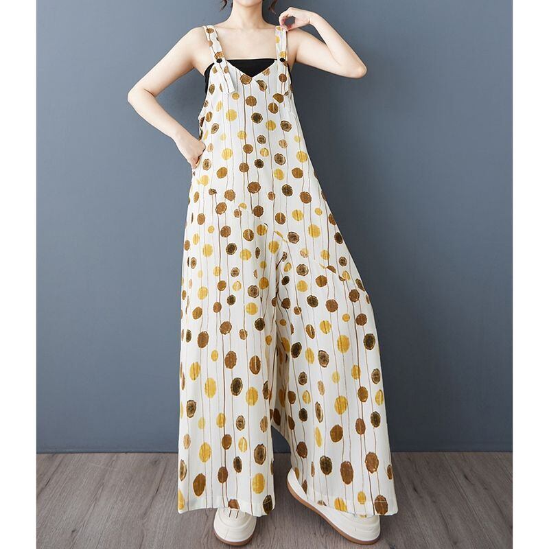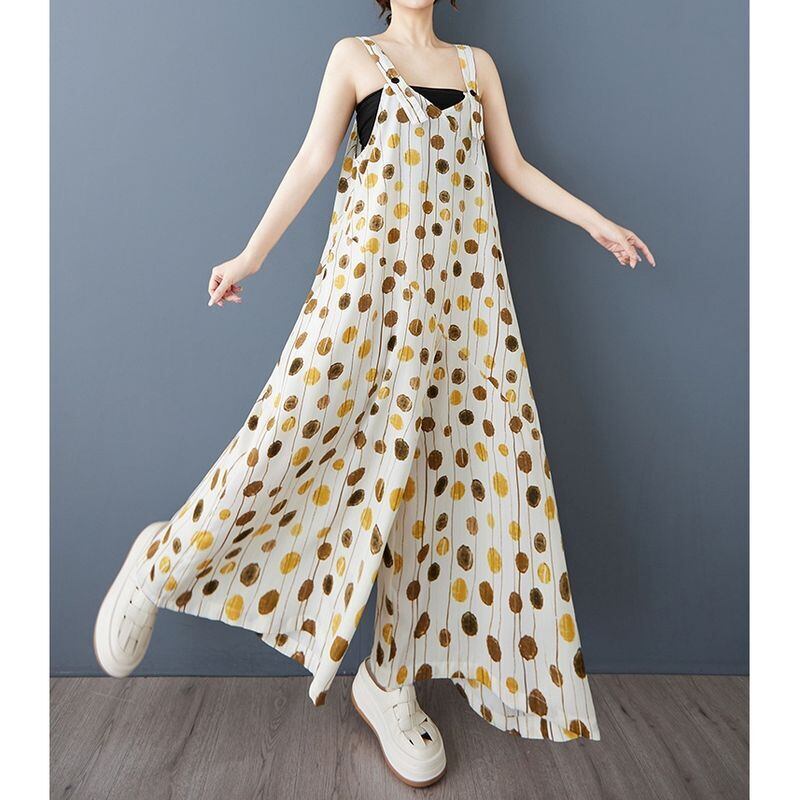 縦長のドット柄が涼しげなサロペットワイドパンツ。