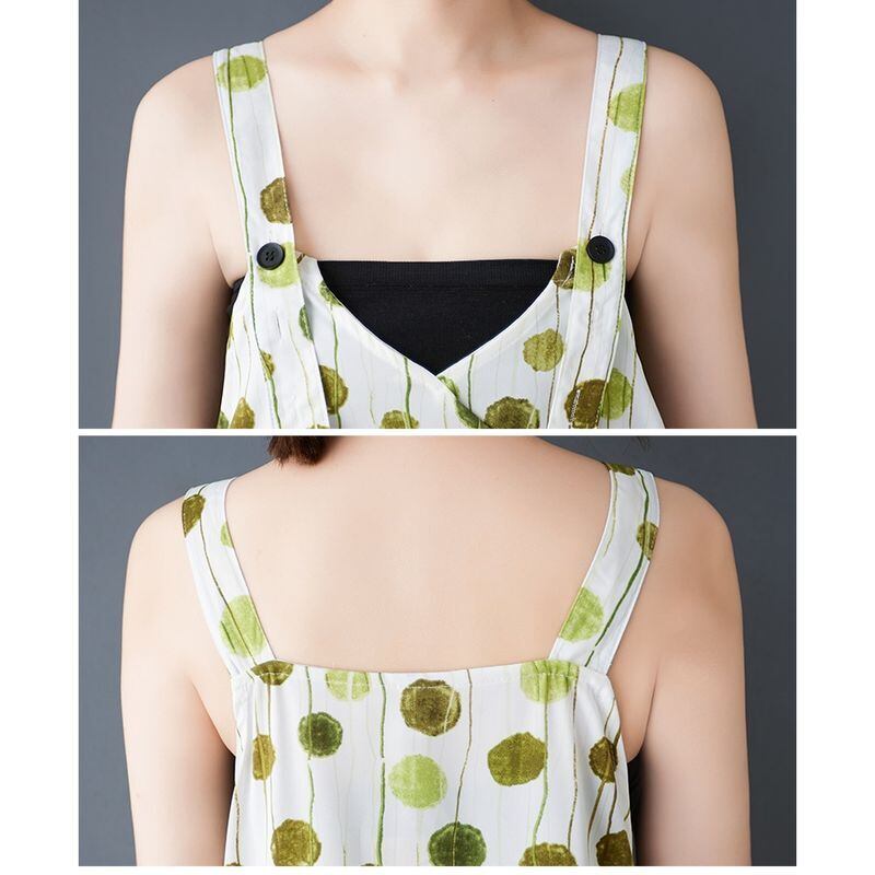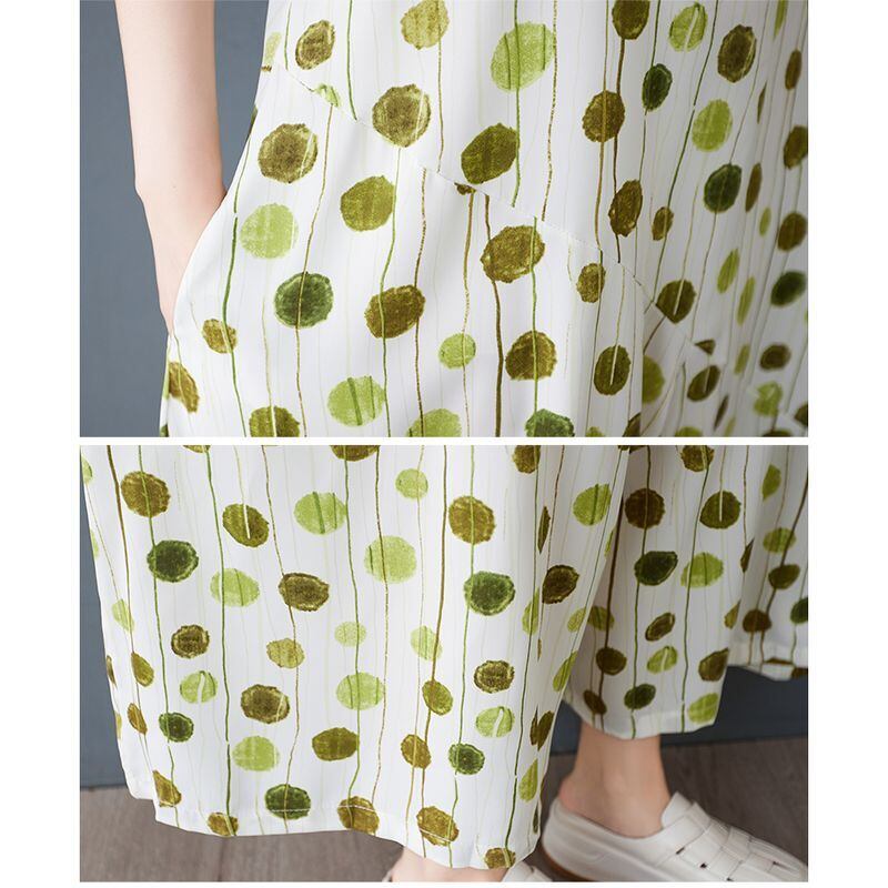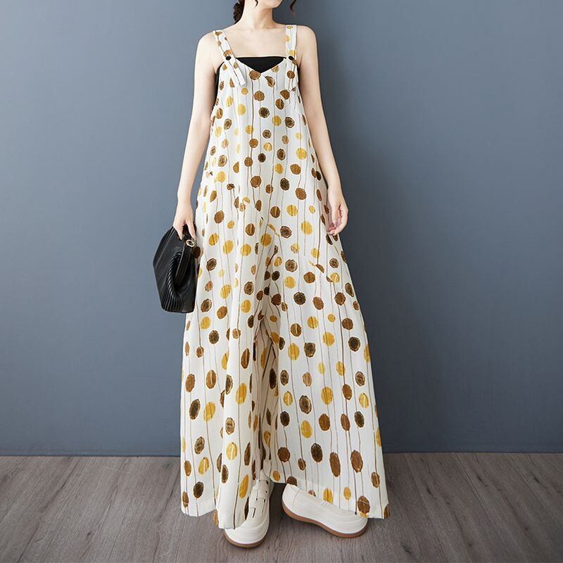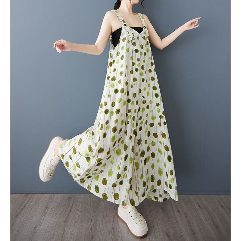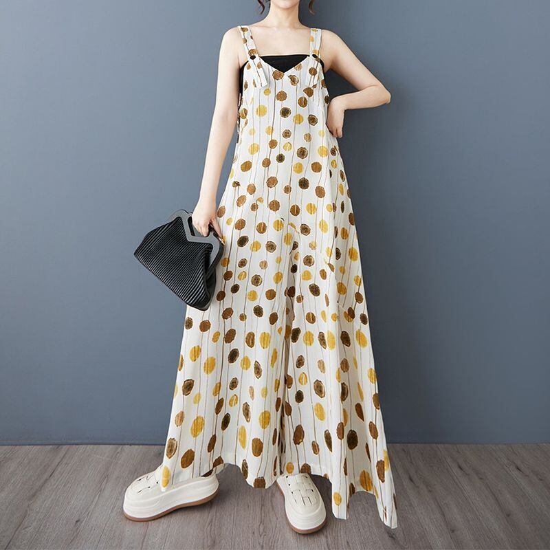 縦長のドット柄が涼しげなサロペットワイドパンツ。