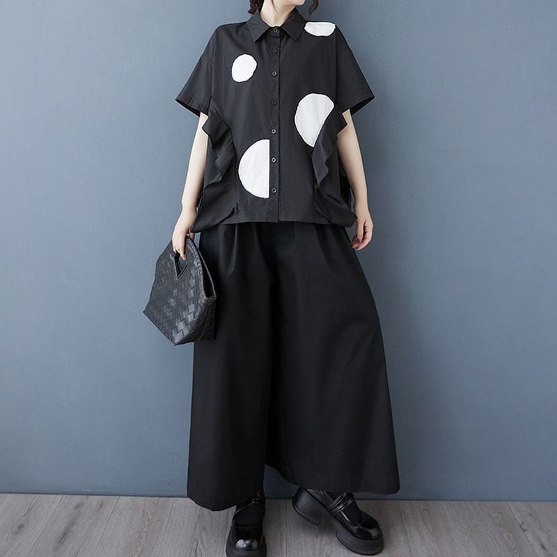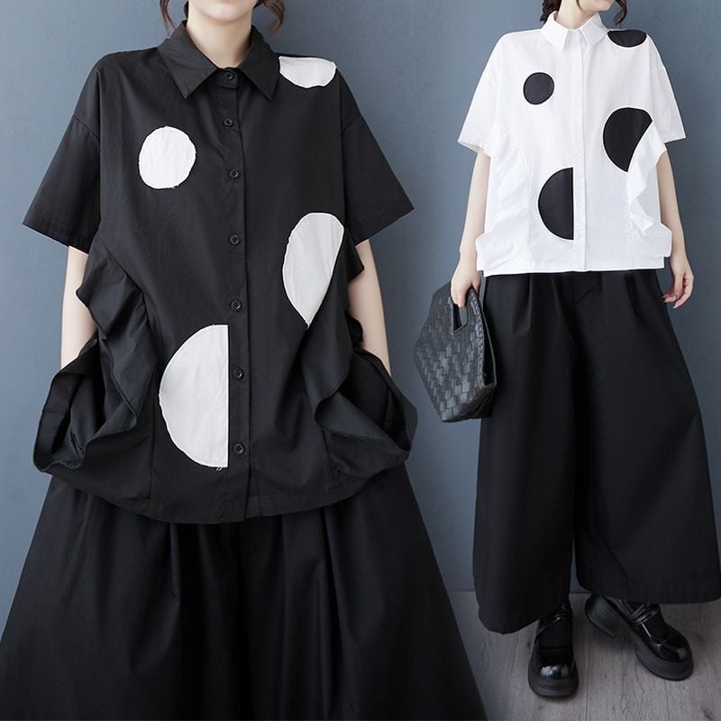 ドット柄 フリル オーバーサイズシャツ 30112