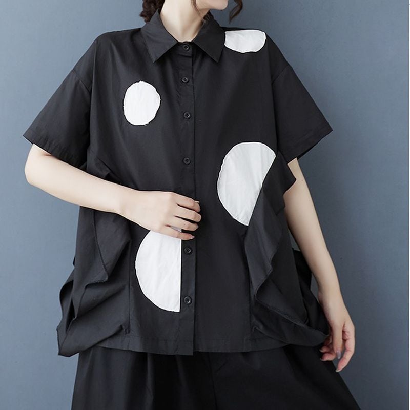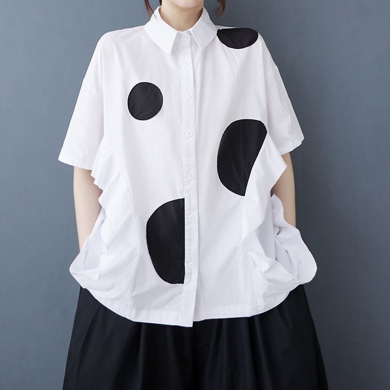 大胆なドット柄が目を惹く、オーバーサイズシャツ。
