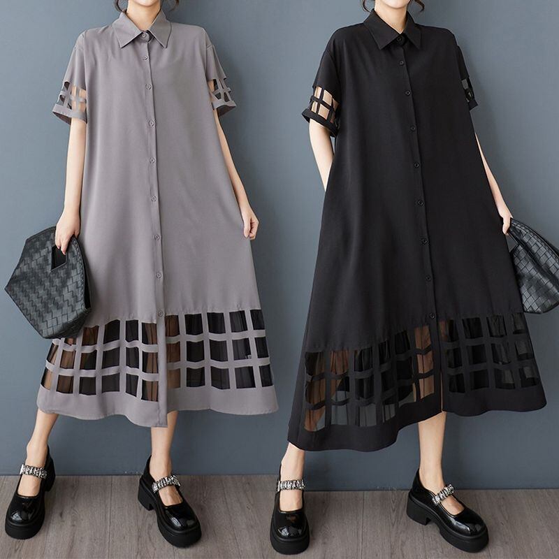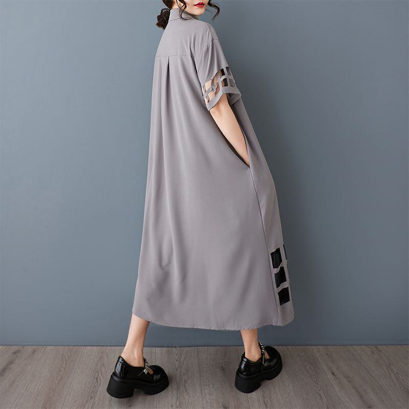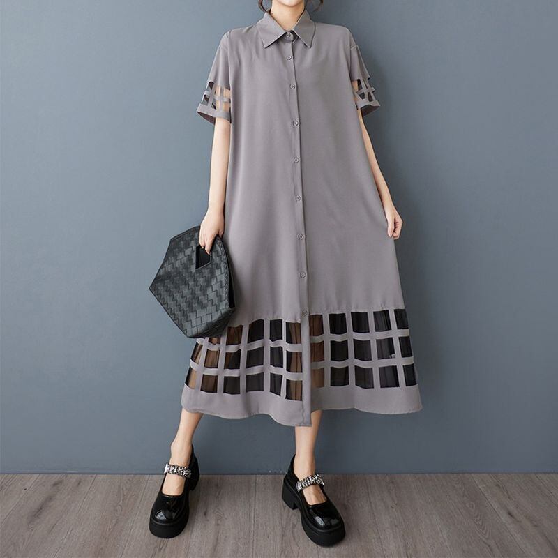 シンプルな中に個性が光る、スクエアカットヘムが印象的なシャツワンピース。