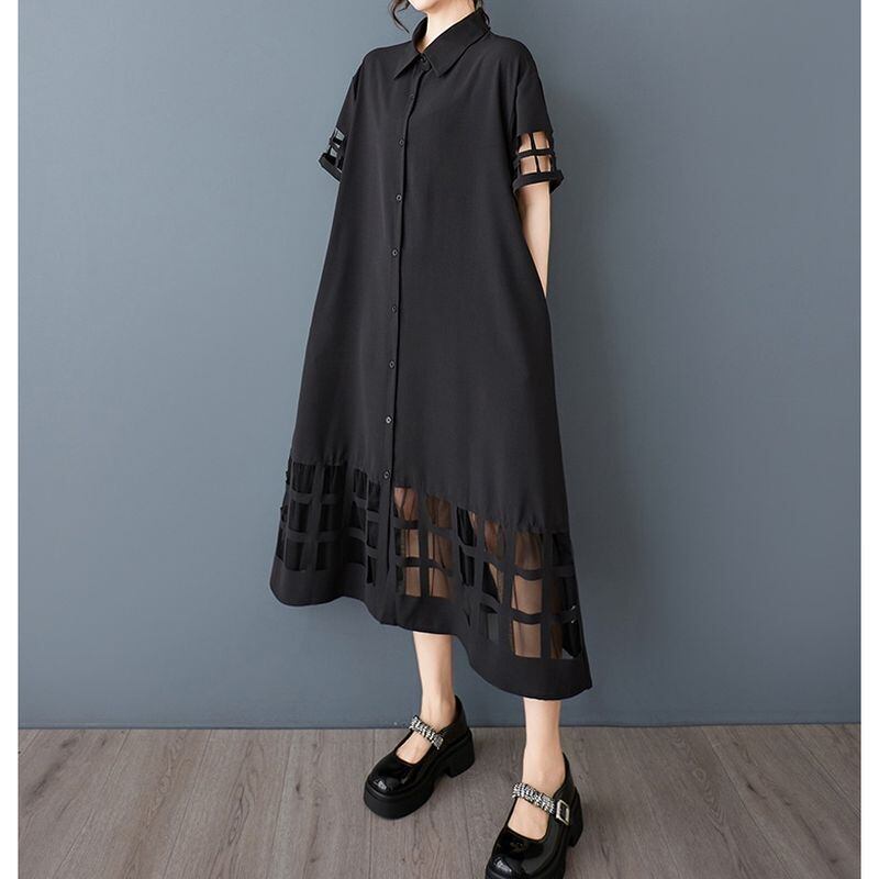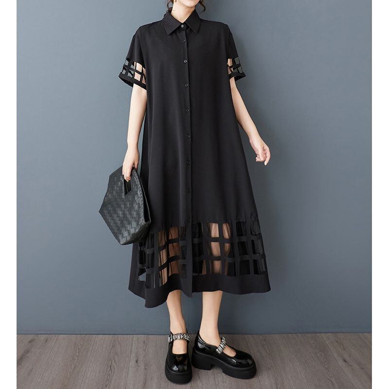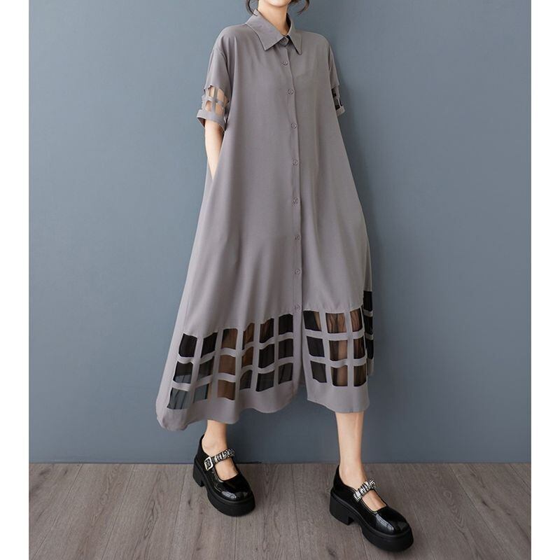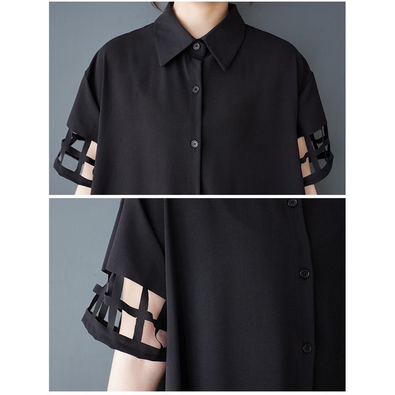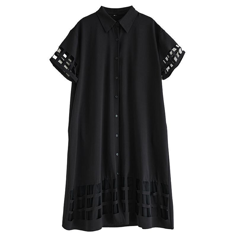 前開きボタンと襟付きのクラシカルなディテールに、裾の大胆なカットワークで遊び心をプラス。