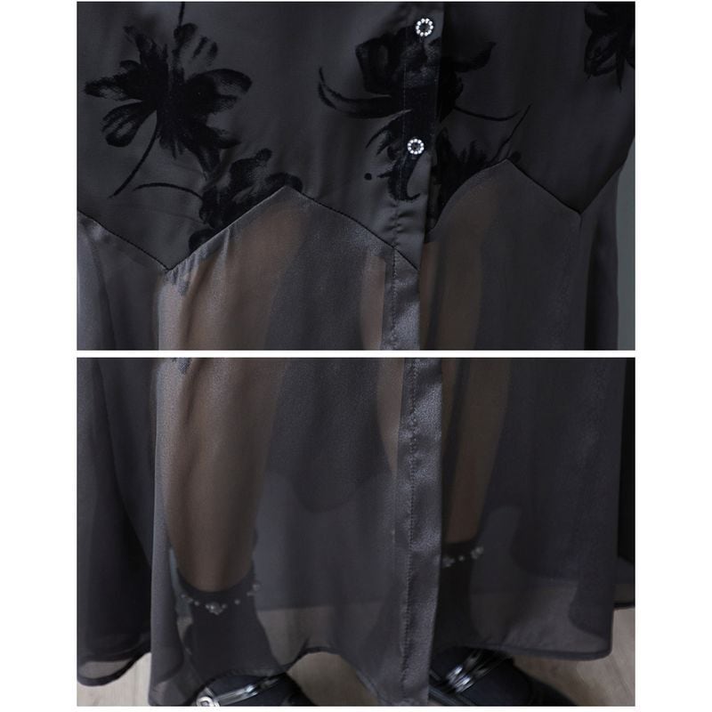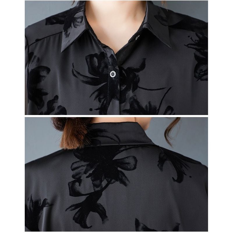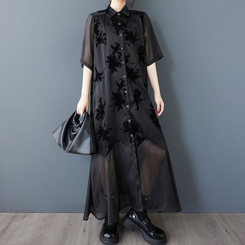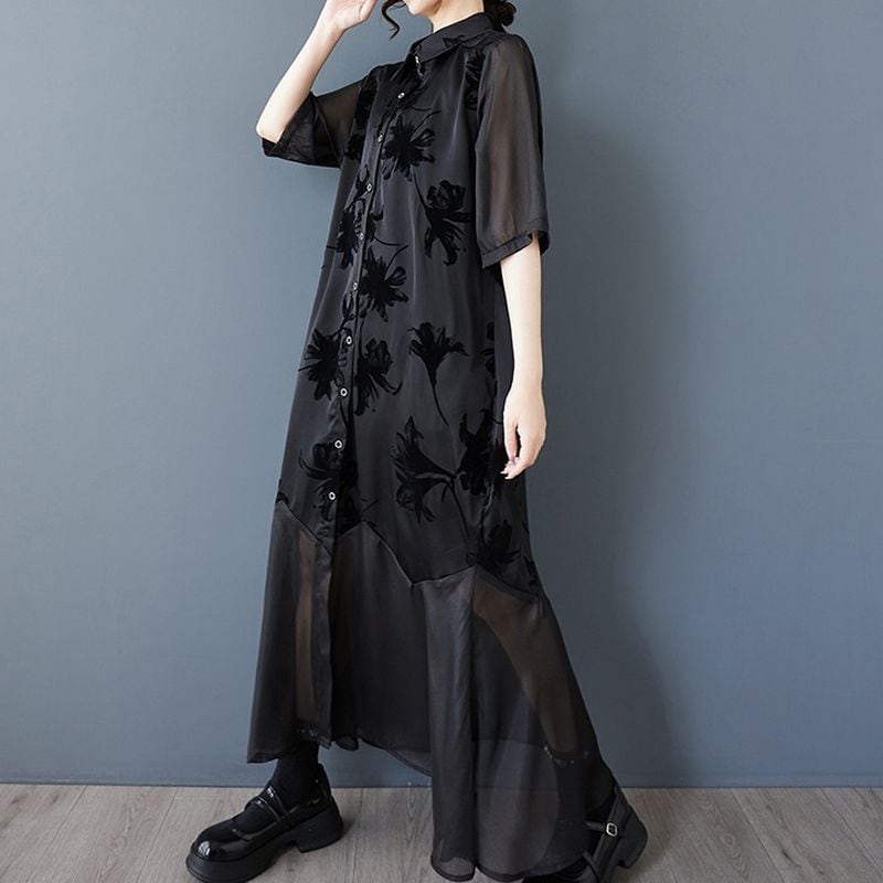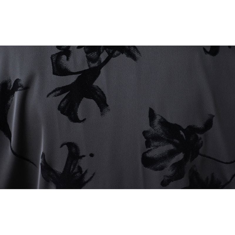 一枚で華やかさを演出できるユリ柄のシャツワンピースです。