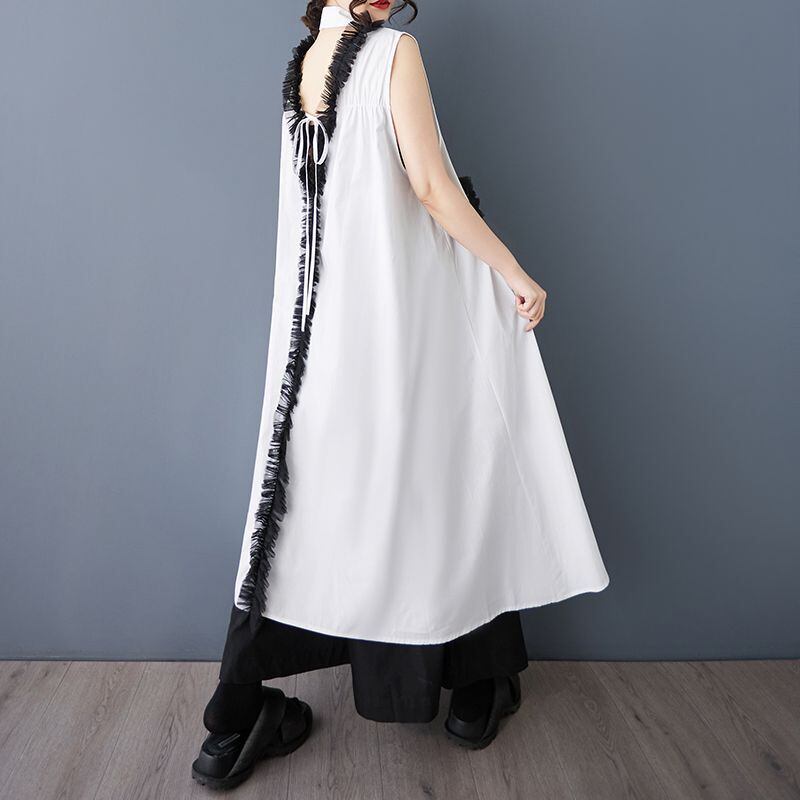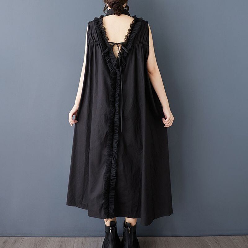 エッジステッチ ノースリーブ バックオープンドレス 30148