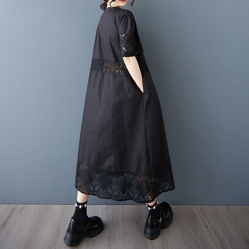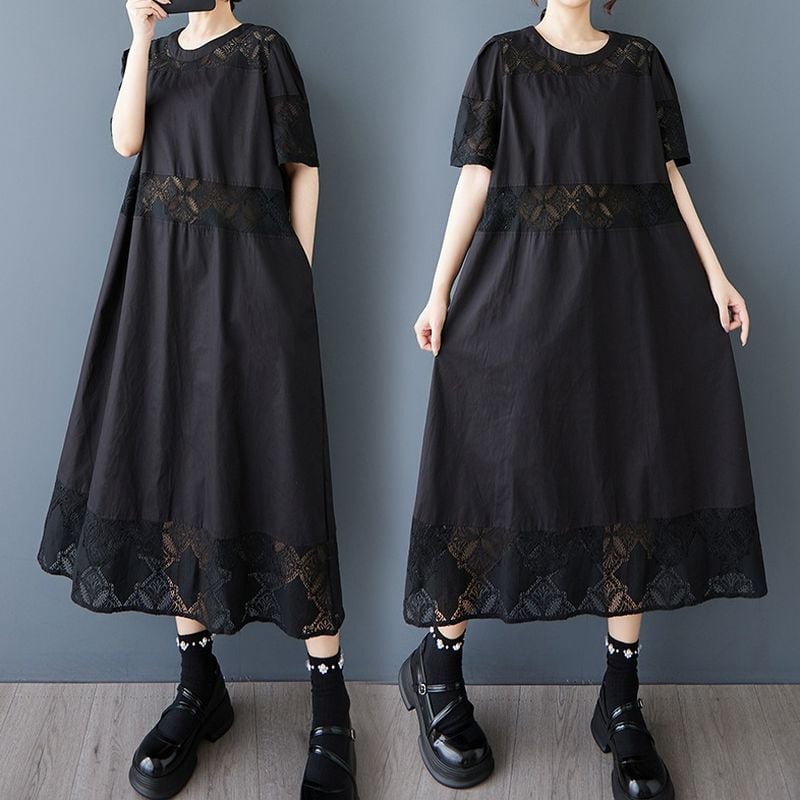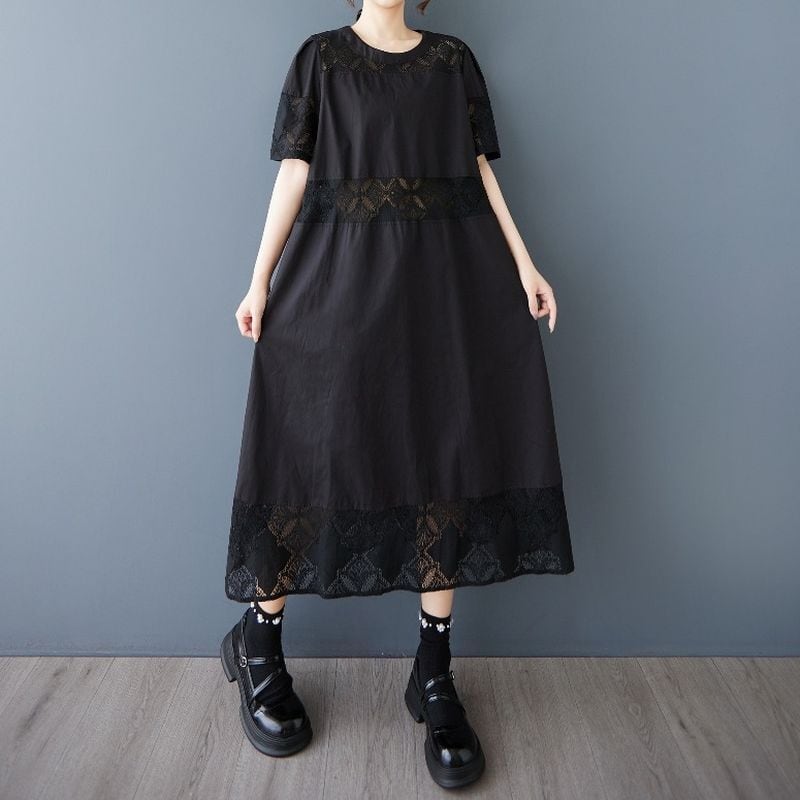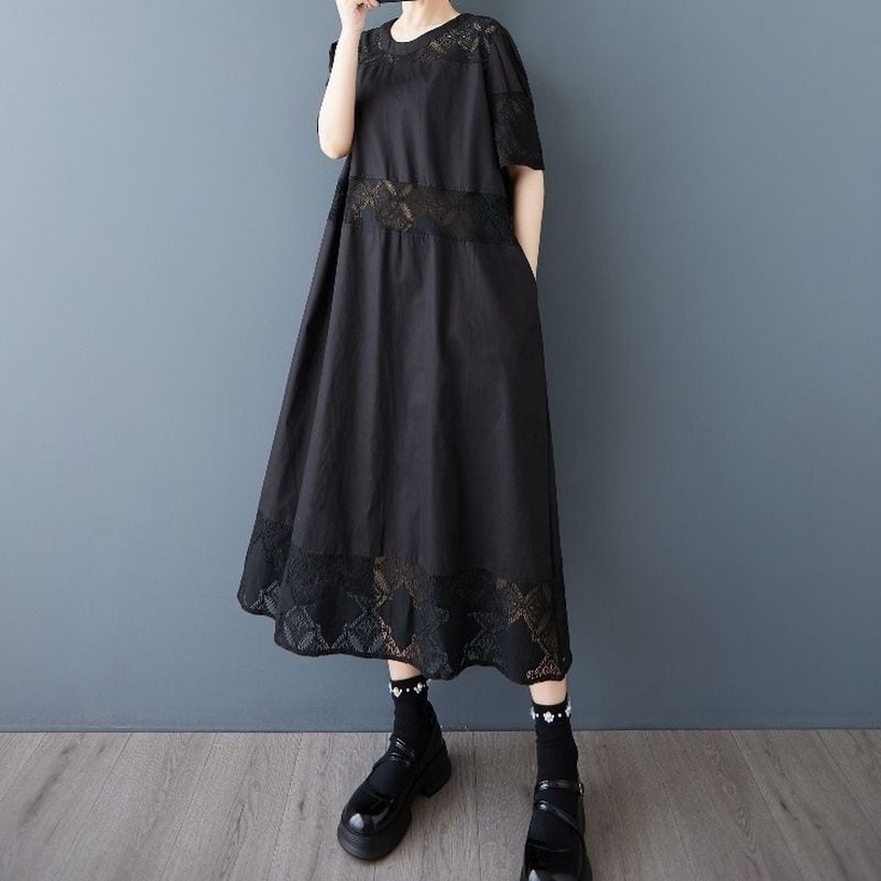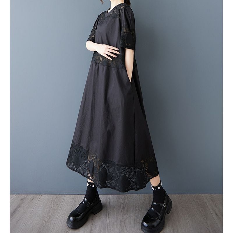 レース切替がポイントのAラインマキシ丈ワンピース。