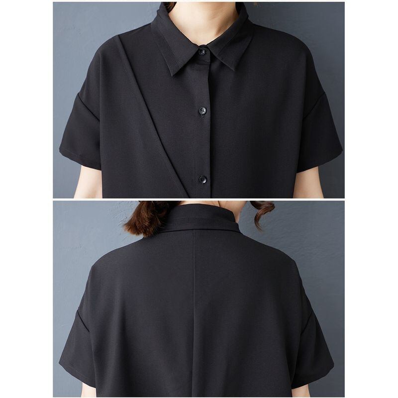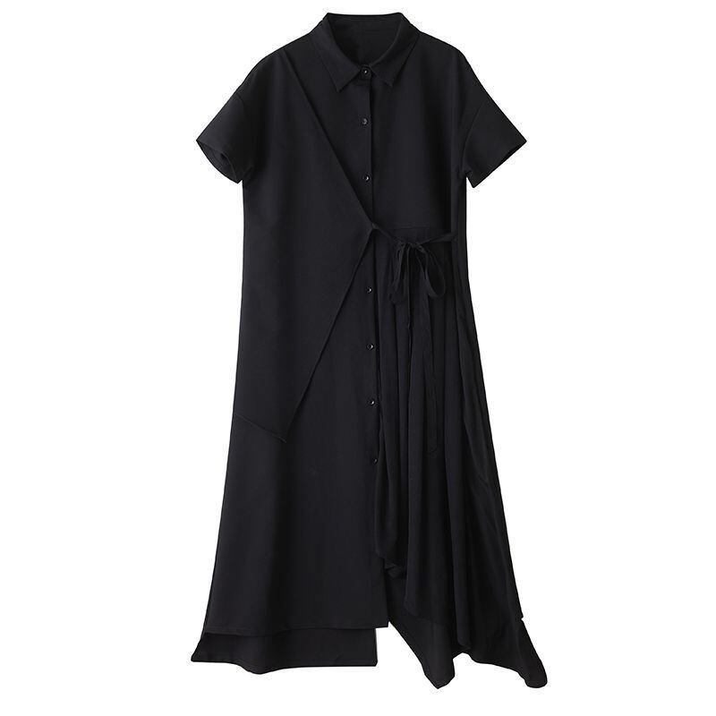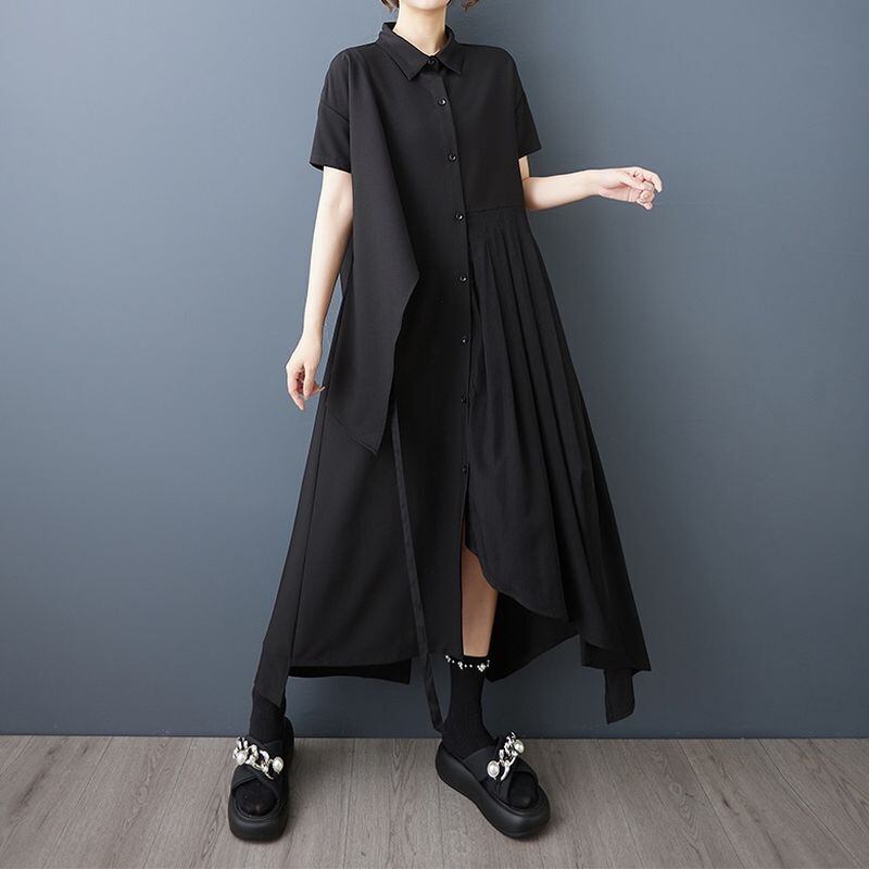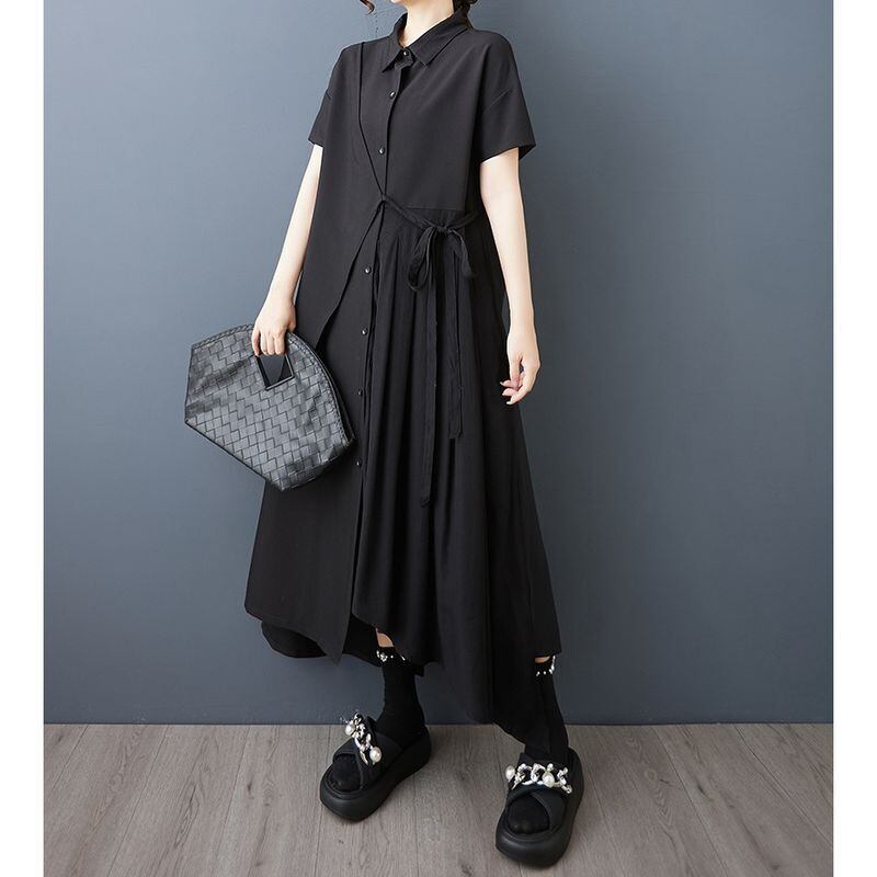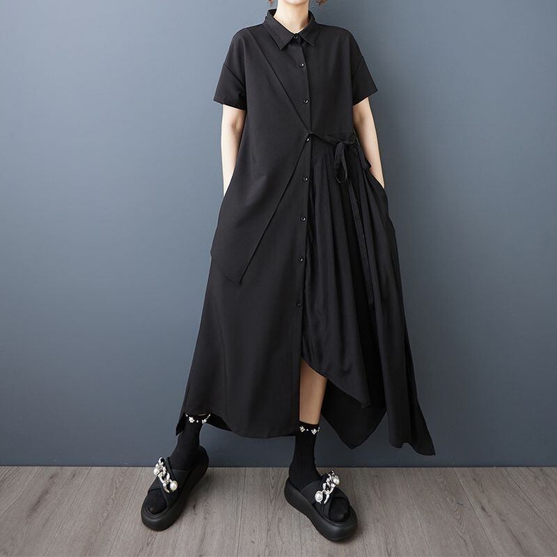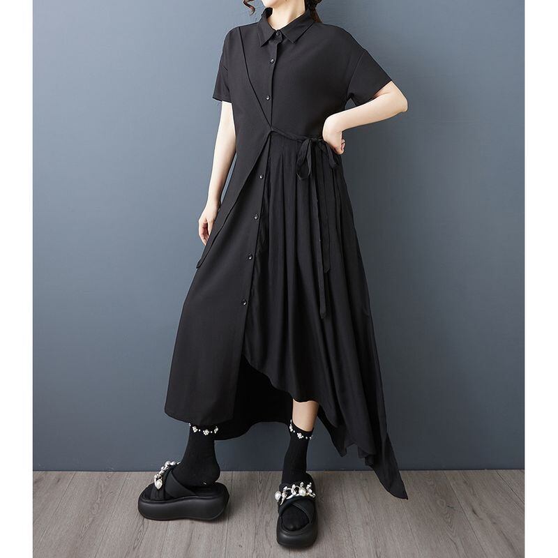 モード感あふれるアシンメトリーデザインが印象的なシャツワンピース。