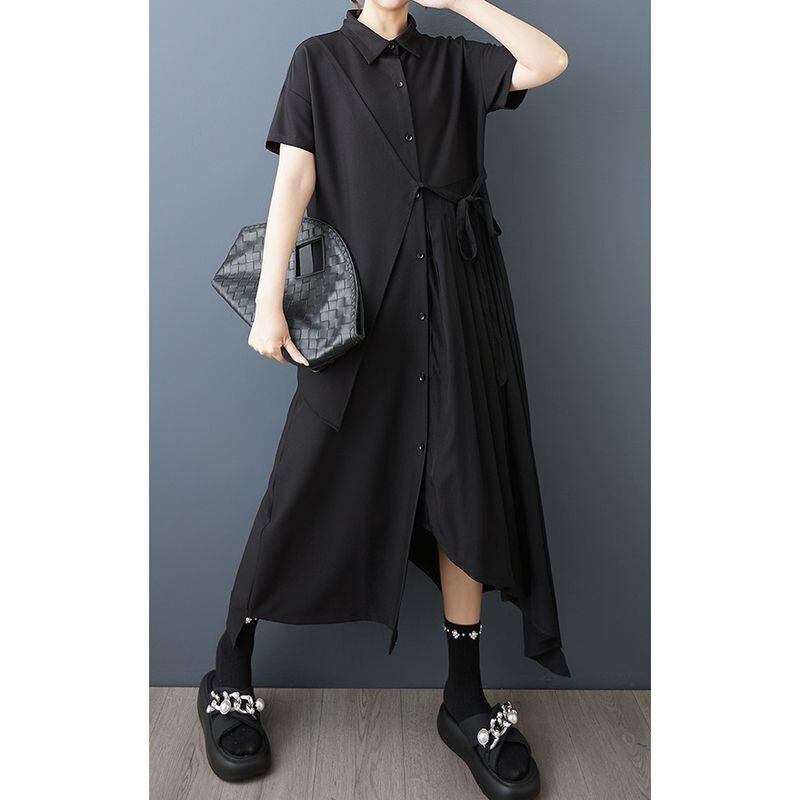 アシンメトリー プリーツ シャツワンピース 30157