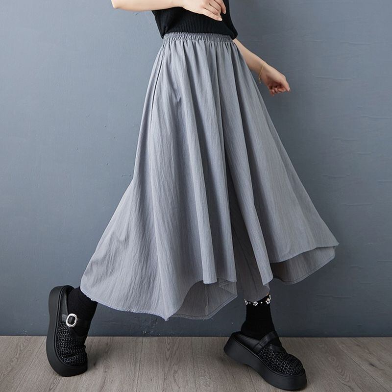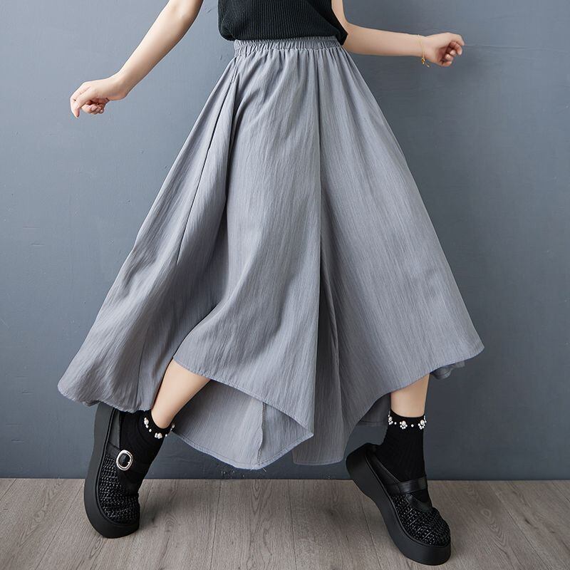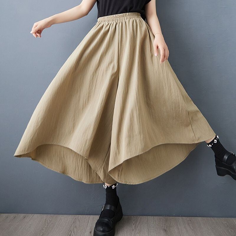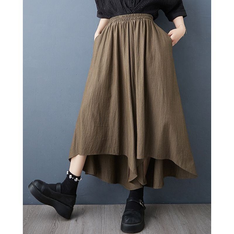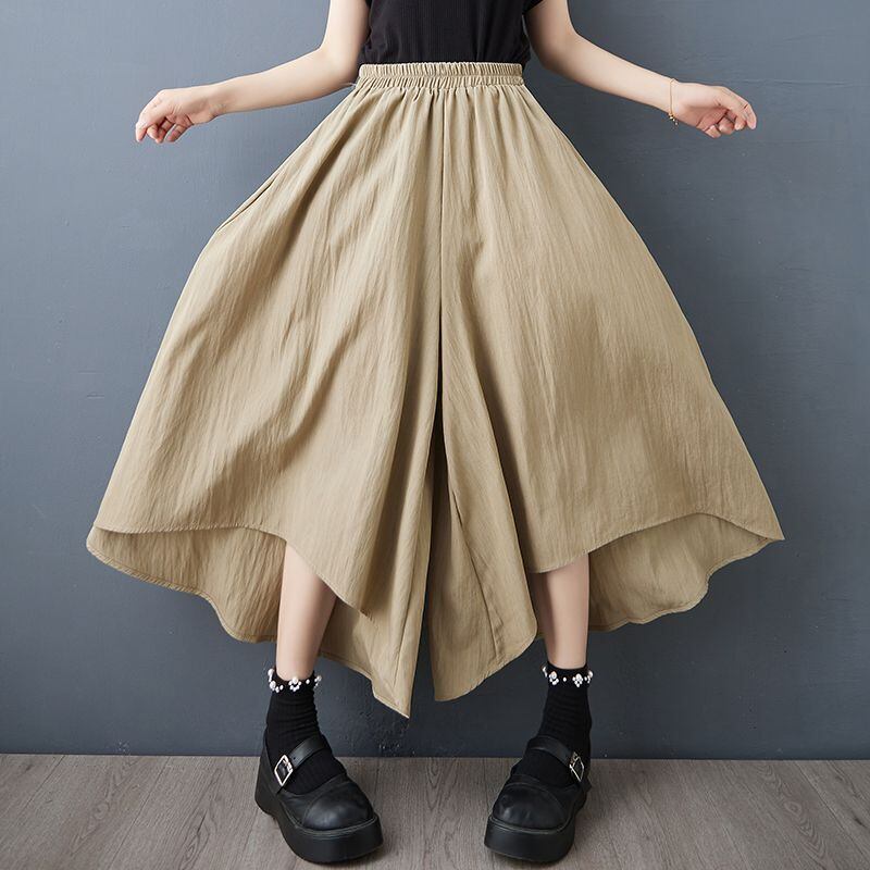 前側がやや短い丈感が動きを出し、大振りスカート風のシルエットが女性らしい柔らかさとスタイルアップを叶えます。