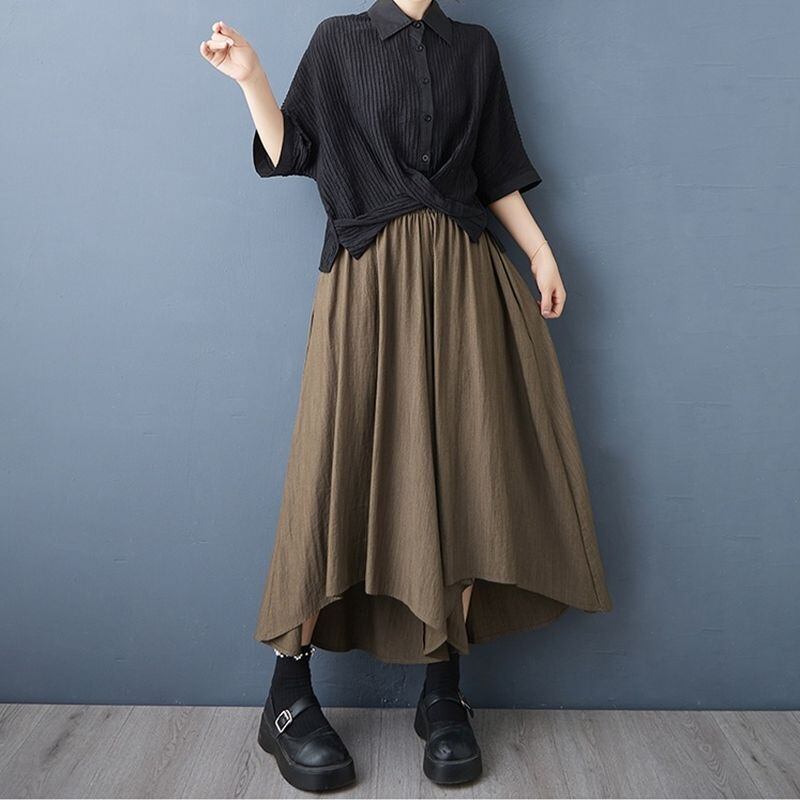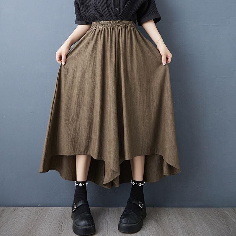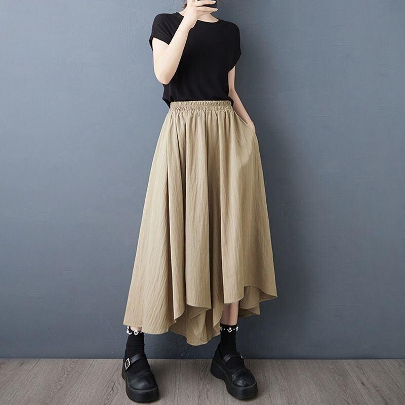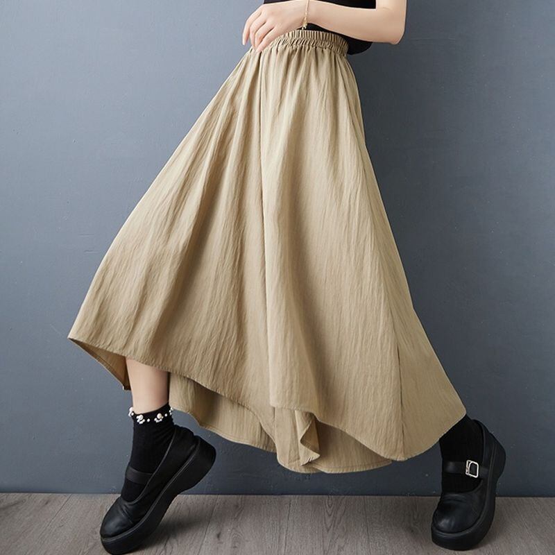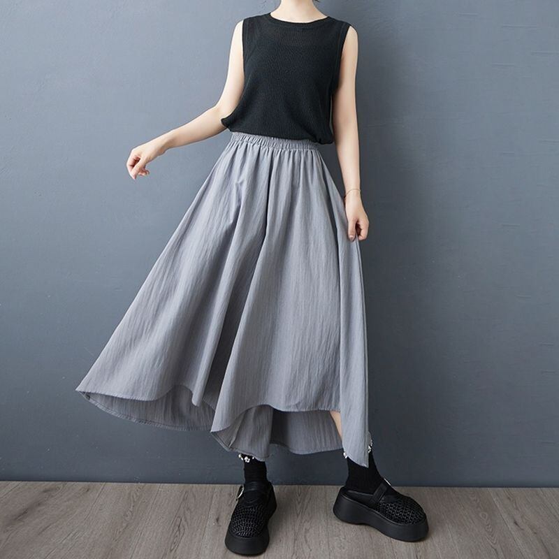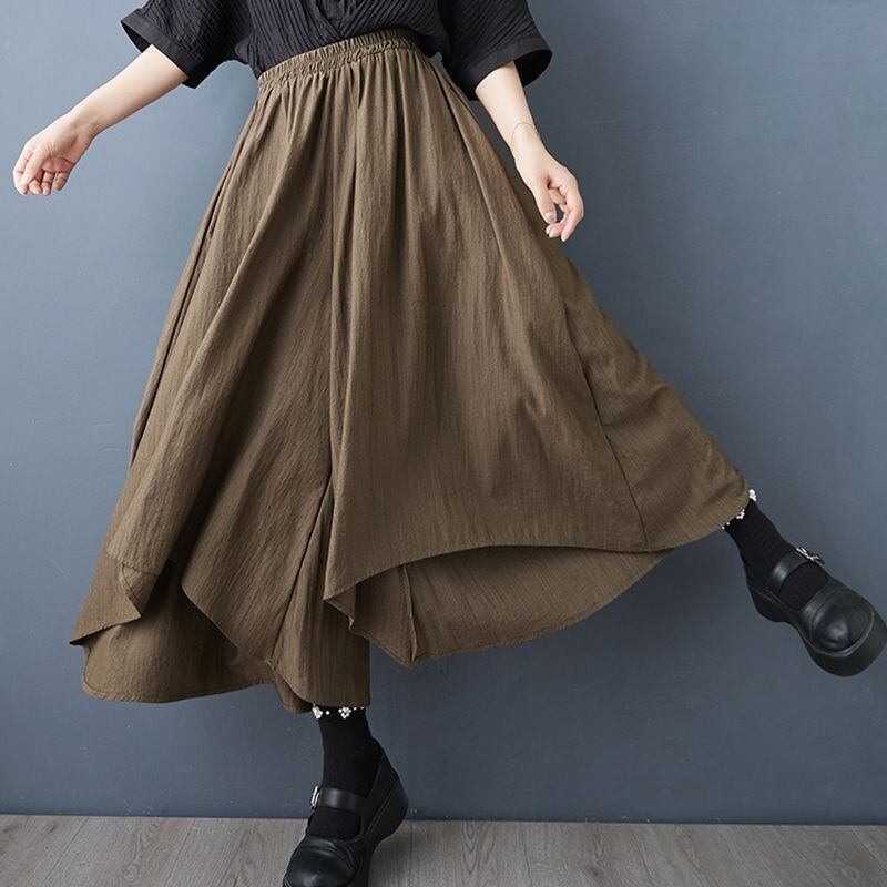 前側がやや短い丈感が動きを出し、大振りスカート風のシルエットが女性らしい柔らかさとスタイルアップを叶えます。