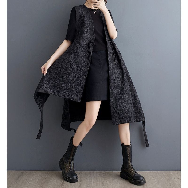 ウエストリボン付きのロング丈ノースリーブジレ。 不規則なカッティングが印象的で、前後差のあるシルエットが自然な動きを生み出します。 ゆったりとした着心地で、気負わず羽織れるのも嬉しいポイント。 カジュアルな装いには抜け感を、フォーマルなシーンにはきちんと感をプラスしてくれる、万能な一枚です。 【サイズ】 M 肩幅:41cm 胸囲:106cm 着丈:80-100cm L 肩幅:42cm 胸囲:110cm 着丈:81-101cm XL 肩幅:43cm 胸囲:114cm 着丈:82-102cm XXL 肩幅:44cm 胸囲:118cm 着丈:83-103cm 3XL 肩幅:45cm 胸囲:122cm 着丈:84-104cm ※手採寸のため1-3cmの誤差が生じることがございます。 【素材】 ・ブレンド ■大人気 *Hot item* をご紹介 https://shop.morebelle.com/categories/6319500 ■MoreBelleでおしゃれをお楽しみください。 下記URLよりコレクションをチェック https://shop.morebelle.com 【お届けについて】 こちらの商品は海外店舗より直接発送となる為、 ご注文から 1~4週間(平均2週間)前後で発送いたします。 ■注意事項 ・タイミングによっては 商品在庫切れにより 注文キャンセルとさせていただく恐れもございますので、予めご了承くださいませ。 ・こちらは輸入品となります。日本製とは検品基準が異なる為、 新品未使用品でもごくわずかな汚れや ほつれがある場合もございます。 ・仕入れ工場を変えることがあるため、記載サイズと若干異なる場合がございます。 ・商品の色味は、お使いのモニター環境によって実物と若干異なる場合がございます。 ・イメージ違いやサイズ交換等、お客さまご都合による交換、返品は対応出来かねます。 ■Instagramで新しいファッションをシェア https://www.instagram.com/morebelle.official ------------------------ ご購入前にこちらをお読みください →https://shop.morebelle.com/about ------------------------ ※メールアドレスはキャリアメール以外をご入力いただきますよう、ご協力をお願いします。