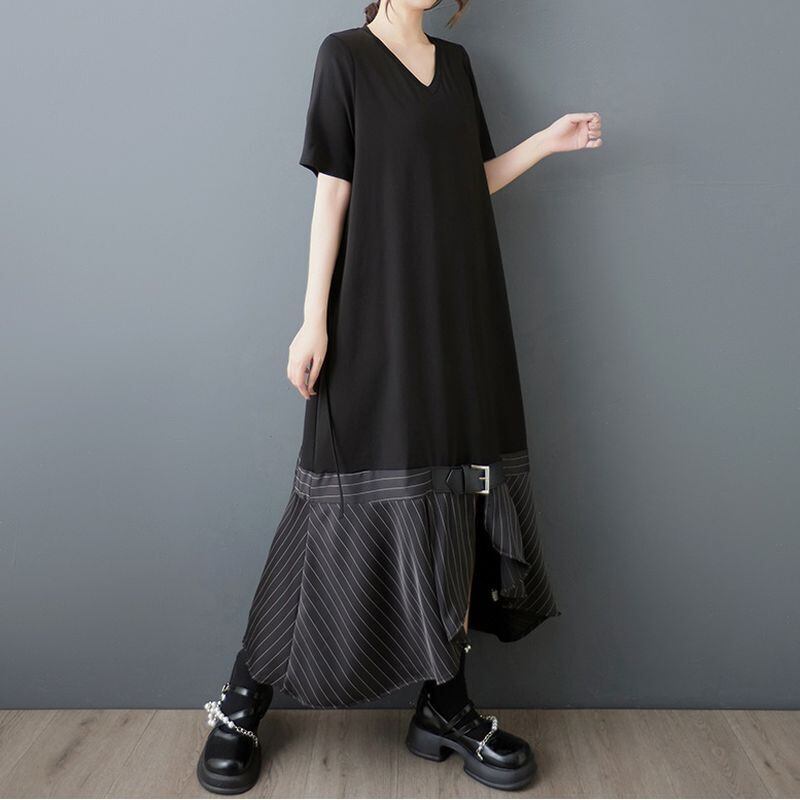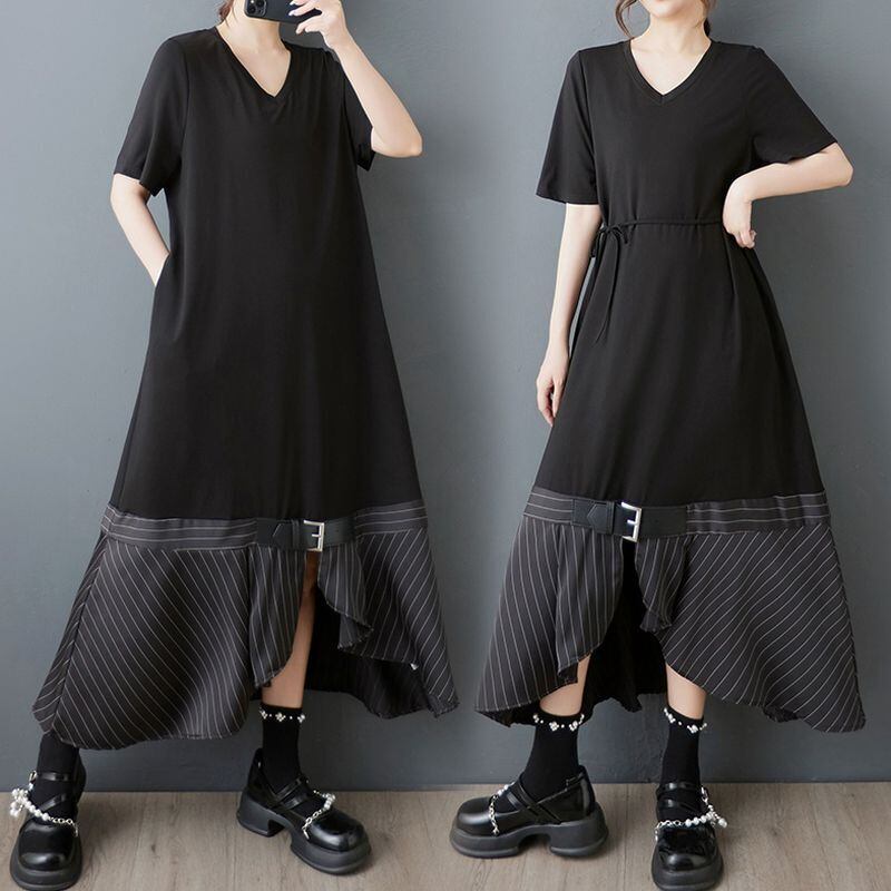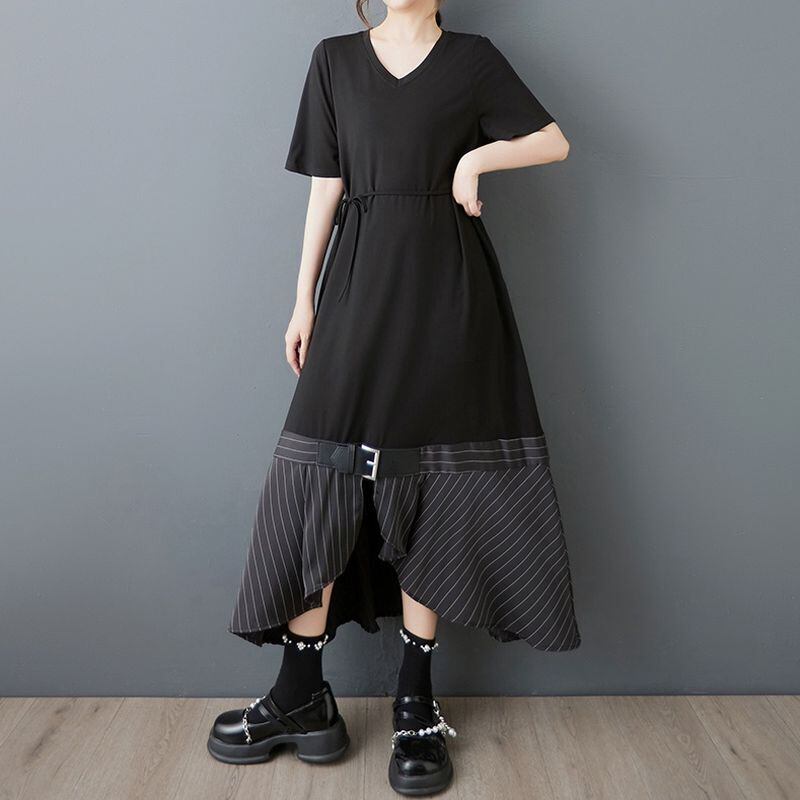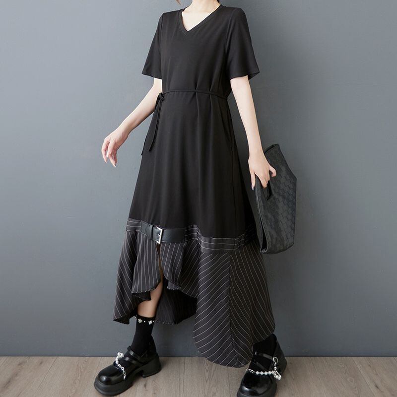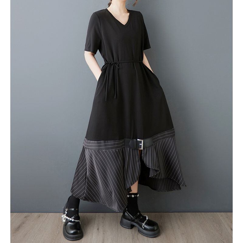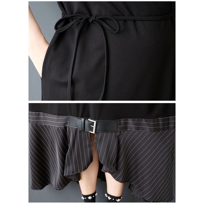 ベルト&ストライプヘム ブラックワンピース 30170