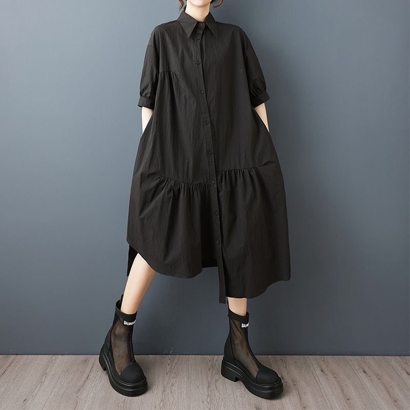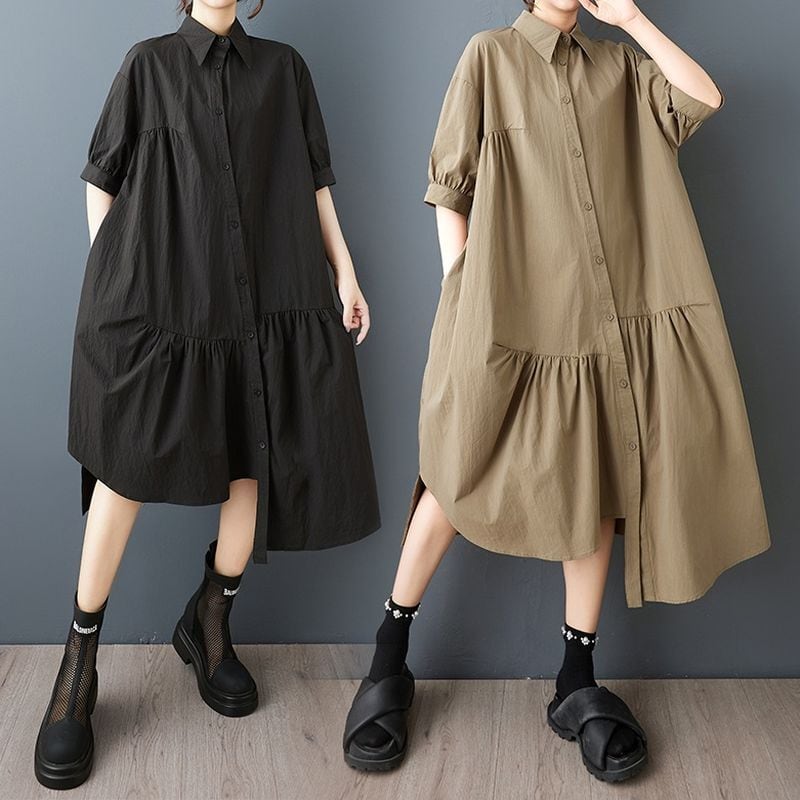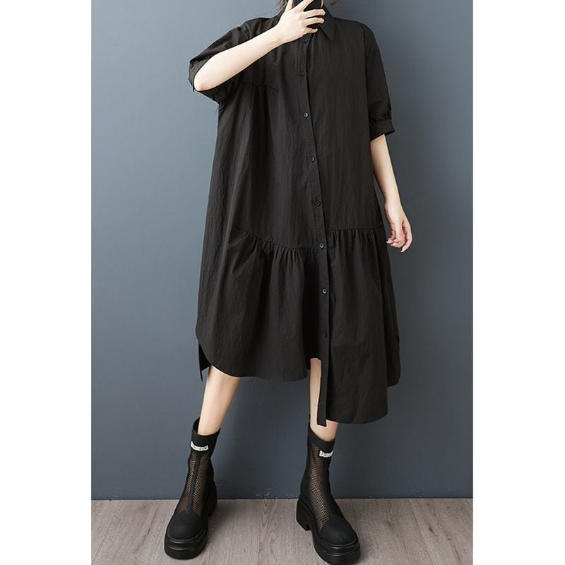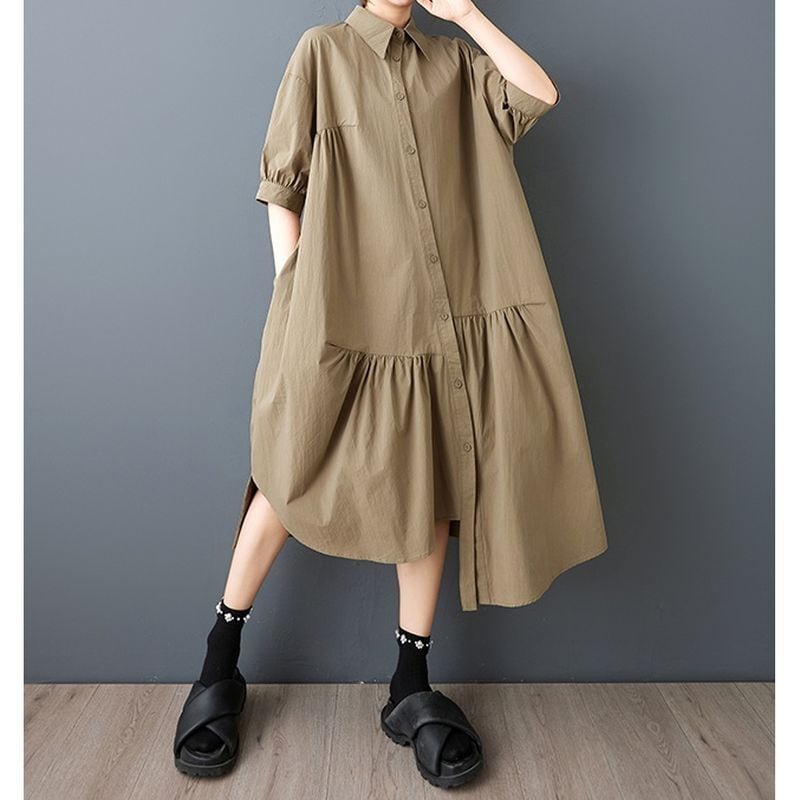 バルーン袖 アシメトリーヘム ワンピース30065