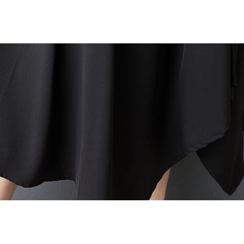 裾に向かって大胆に変化するカッティングが、動くたびに美しいドレープを生み、モード感漂う佇まいに。