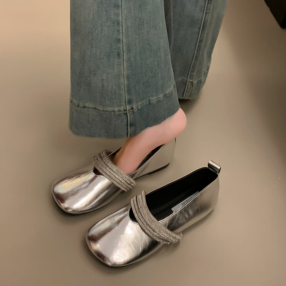 丸みを帯びたスクエアトゥが、トレンド感と履きやすさを両立します。