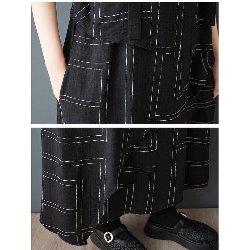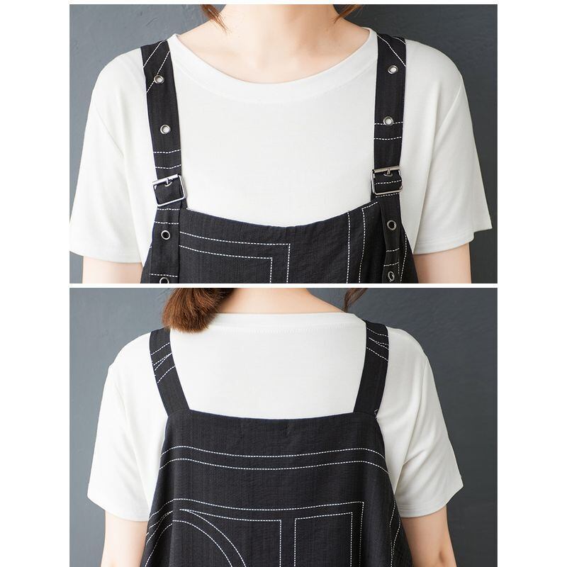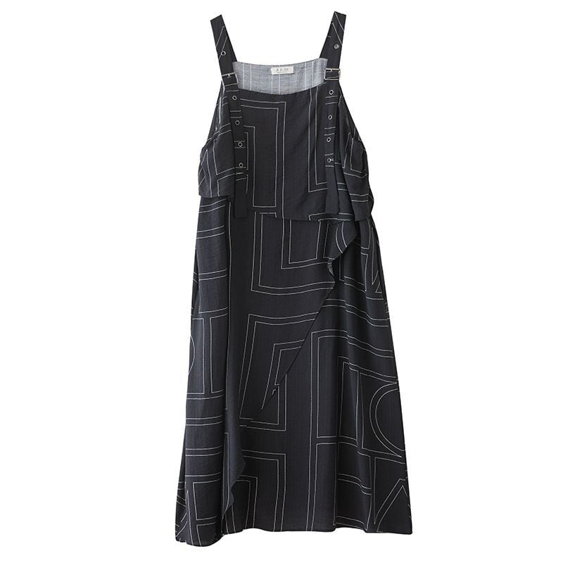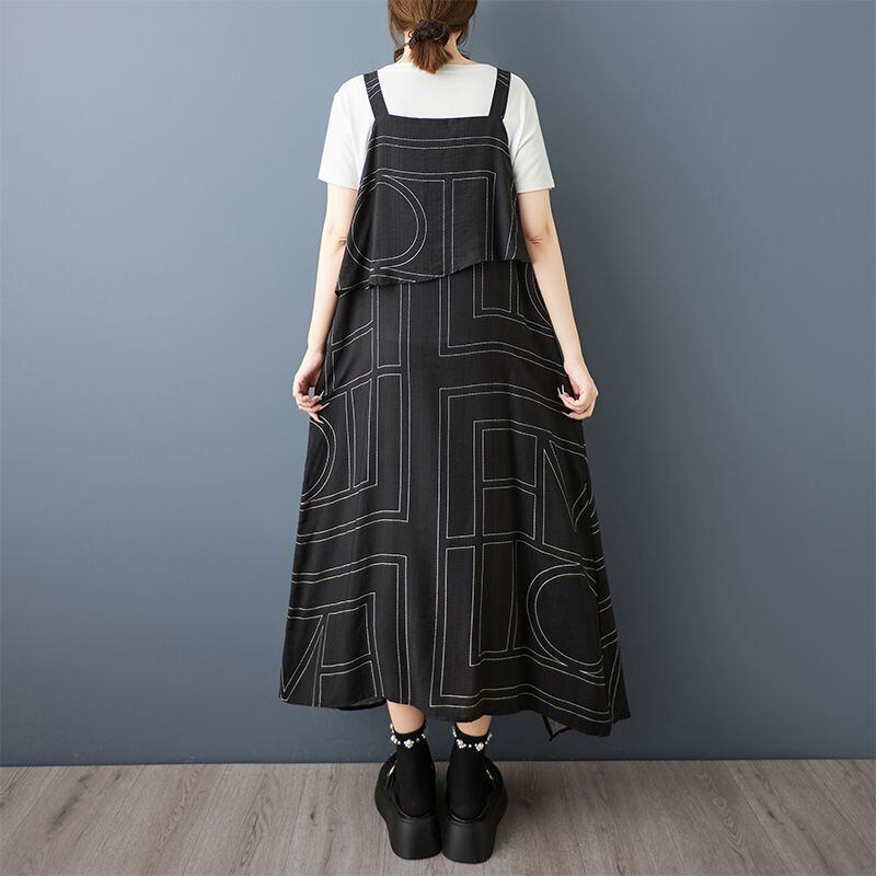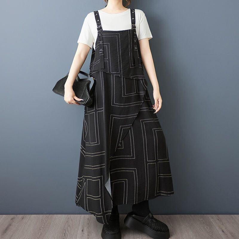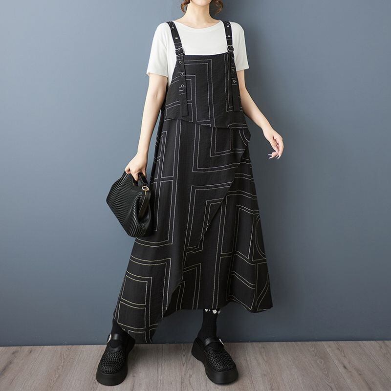 幾何学模様と、斜めに重なるフリルデザインが印象的なジャンパースカート。