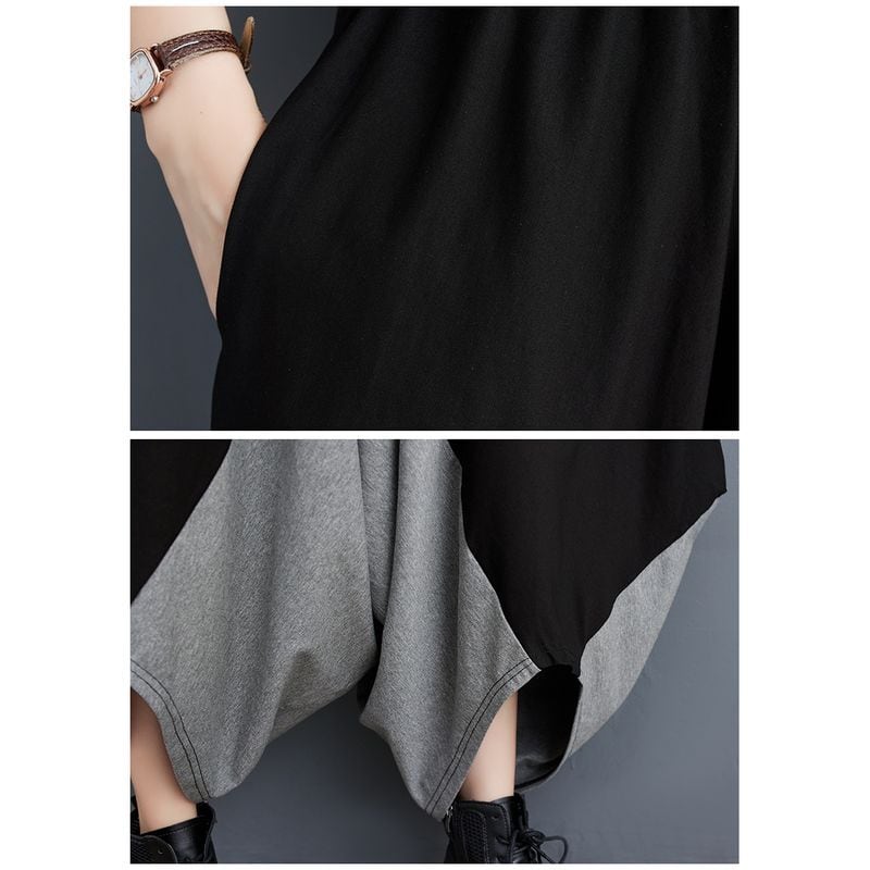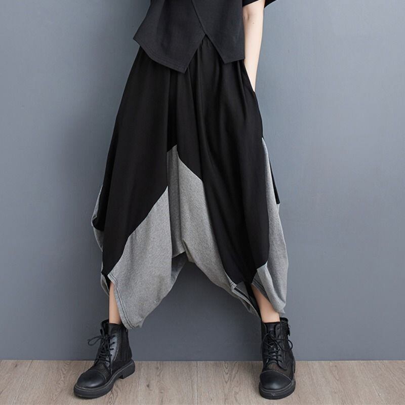 立体的に流れるようなドレープが印象的なサルエルパンツ。
