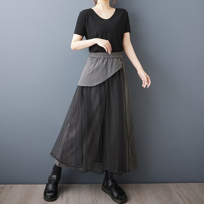 動きのあるアシンメトリーデザインと、繊細なチュールのレイヤードが魅力のロングスカート。
