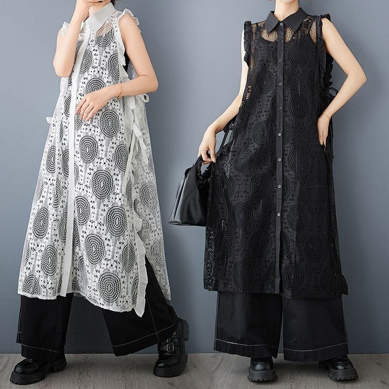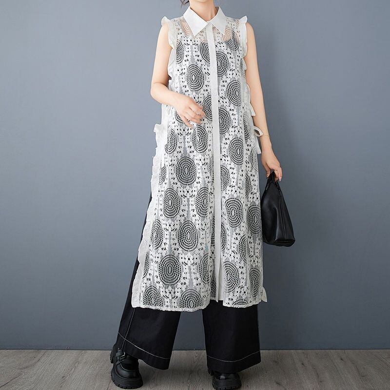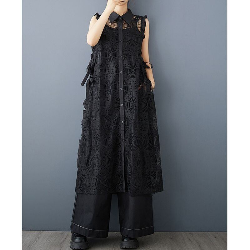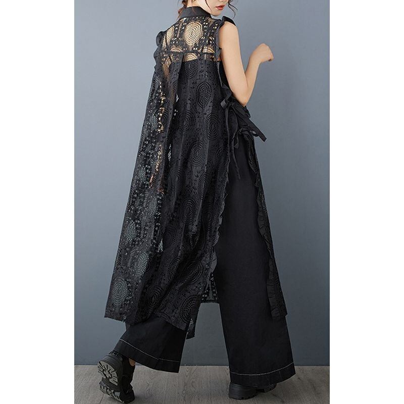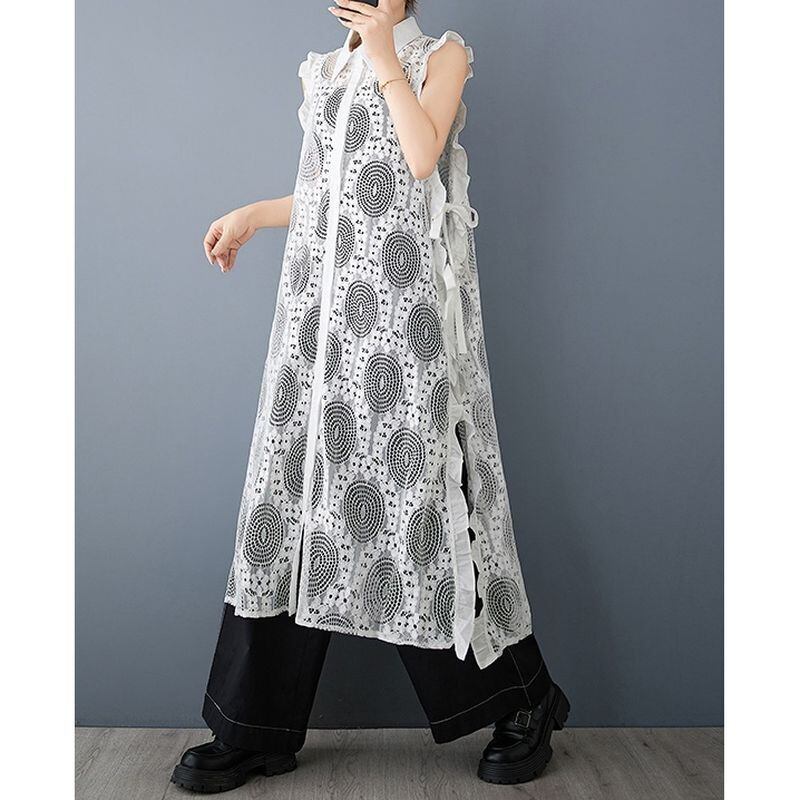 繊細なレースの透け感が美しい、レイヤードにぴったりのロングジレ。