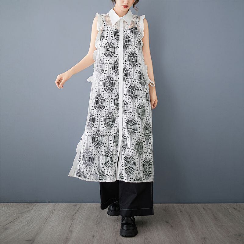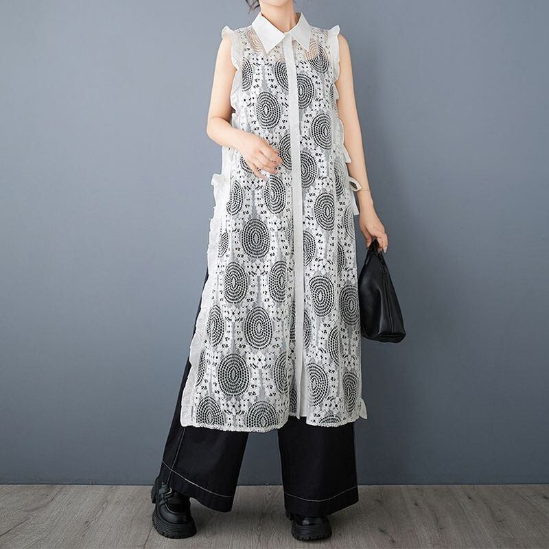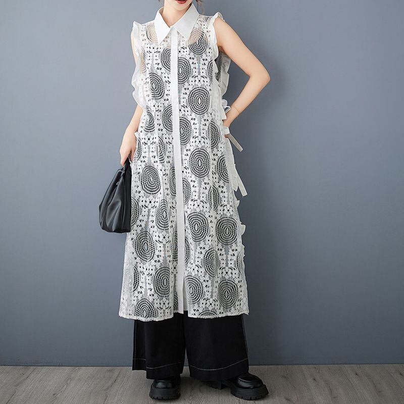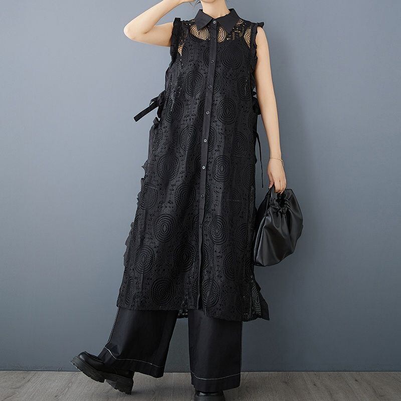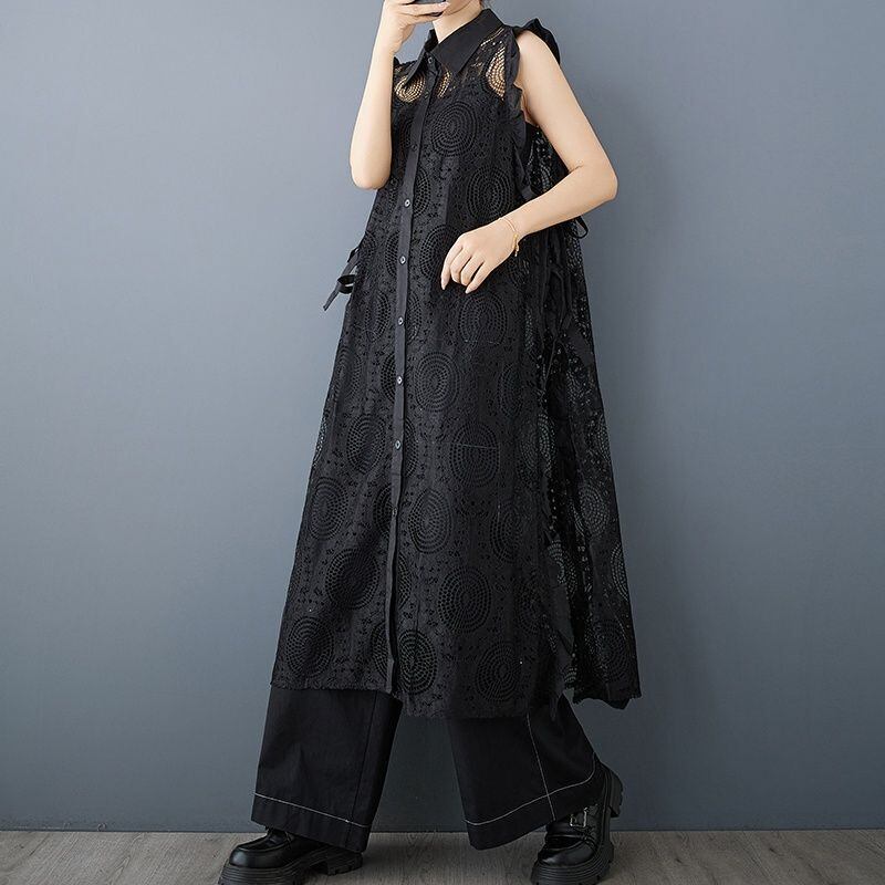 繊細なレースの透け感が美しい、レイヤードにぴったりのロングジレ。