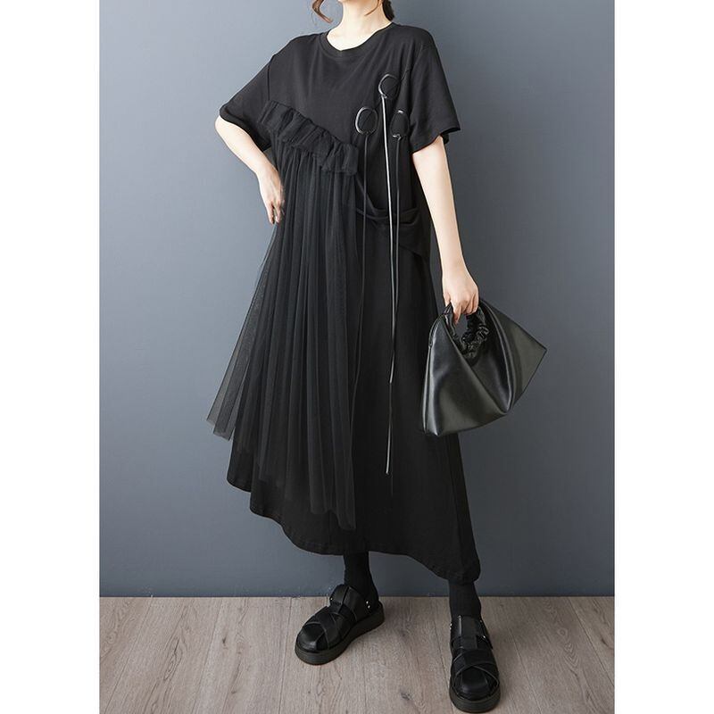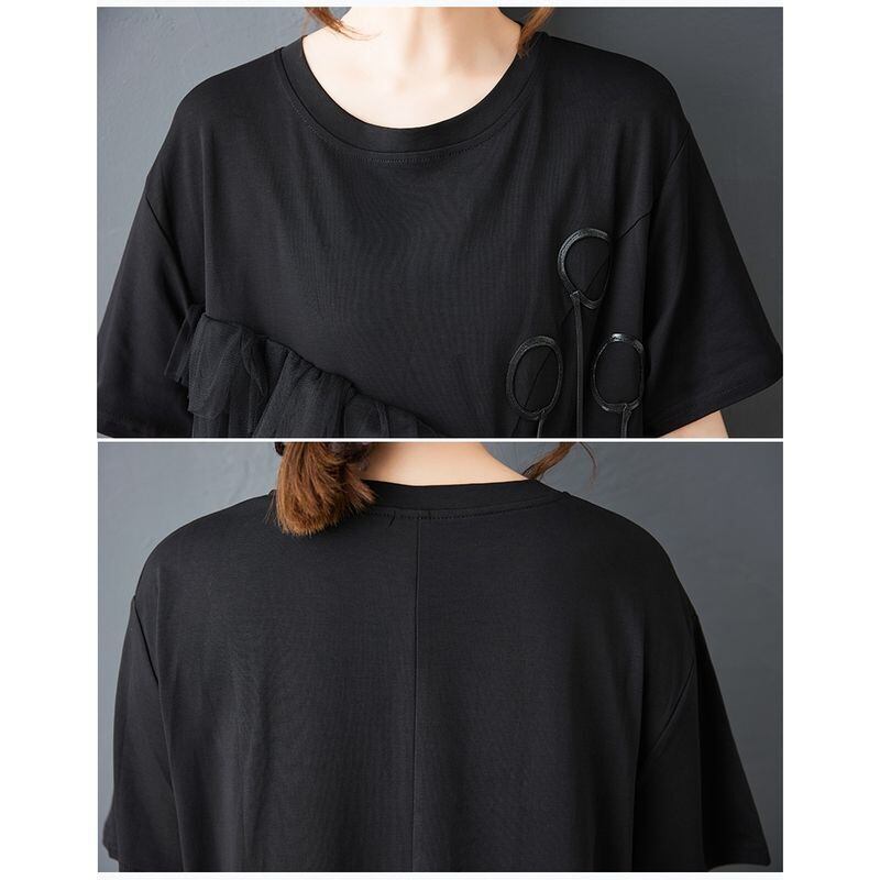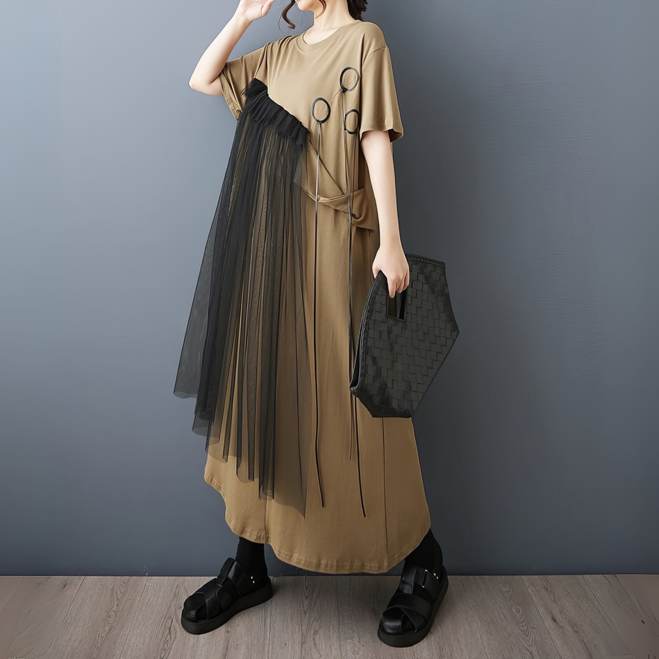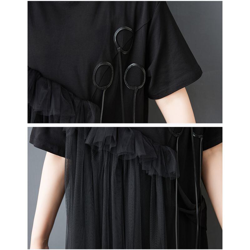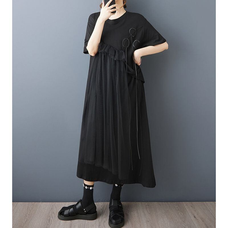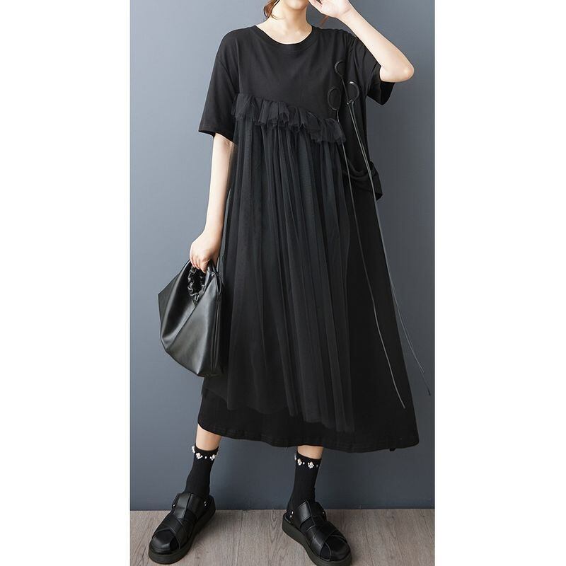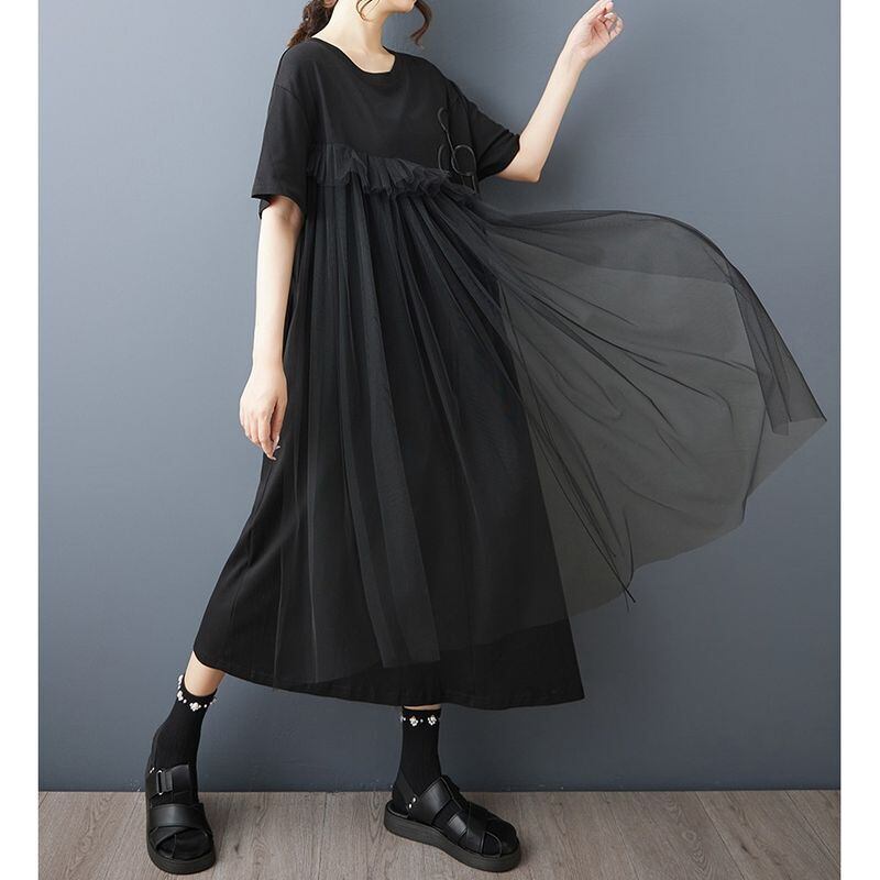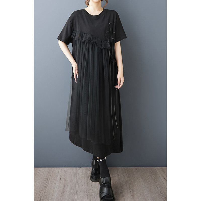 ゆったりとしたシルエットに、斜めに広がるチュールフリルを重ねたアシンメトリーデザインが、動きのある印象を与えてくれます。
