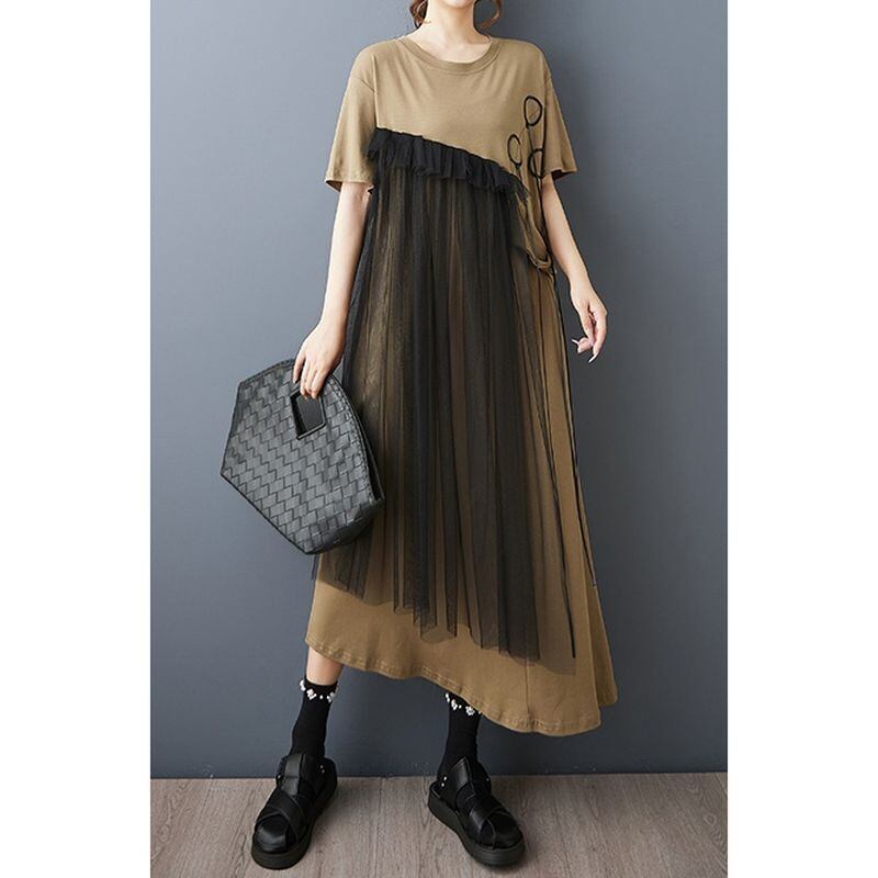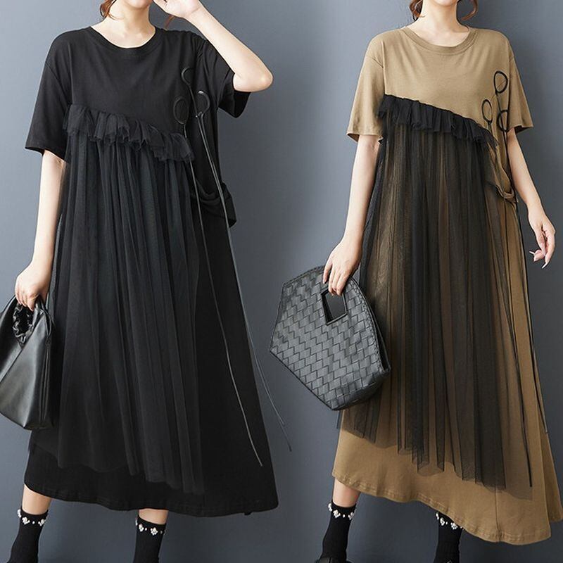 チュール切替 アシメトリー ワンピース 30203