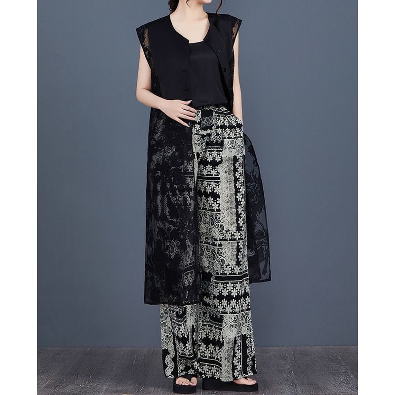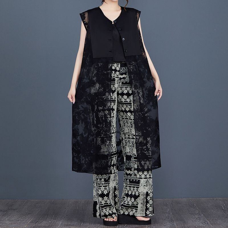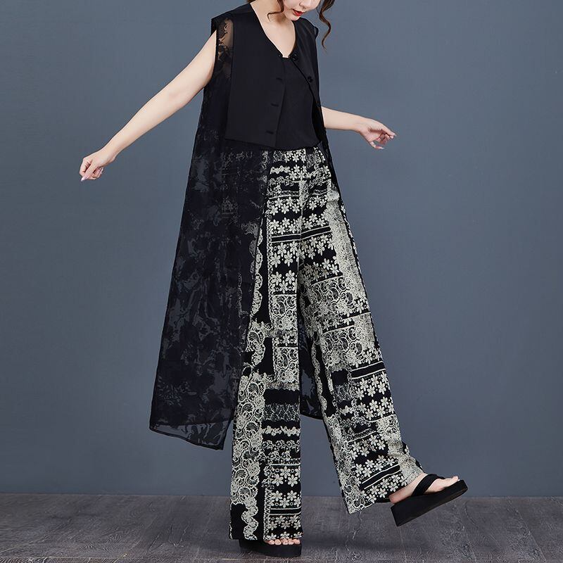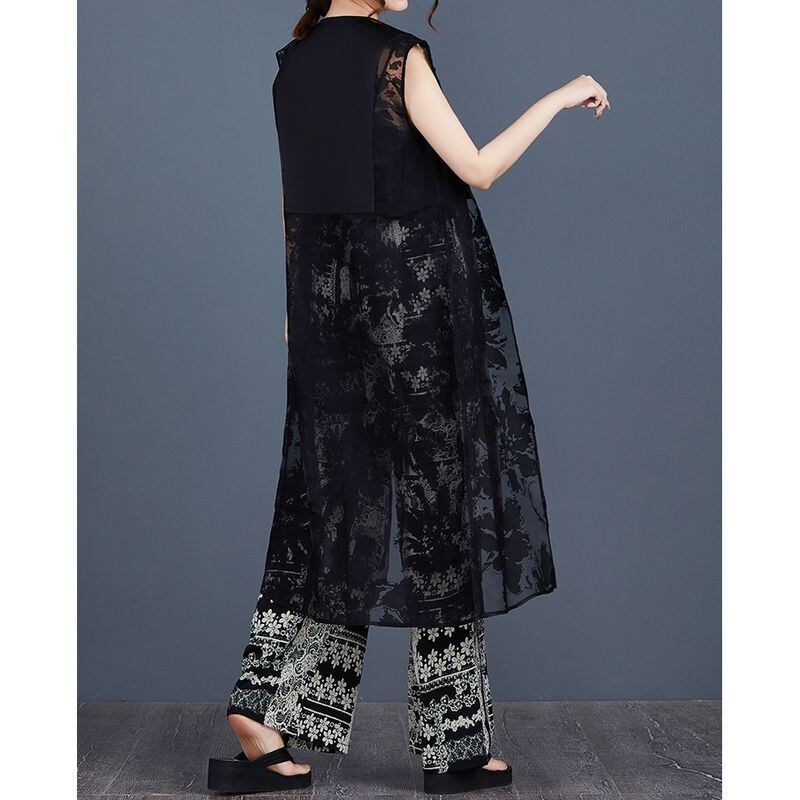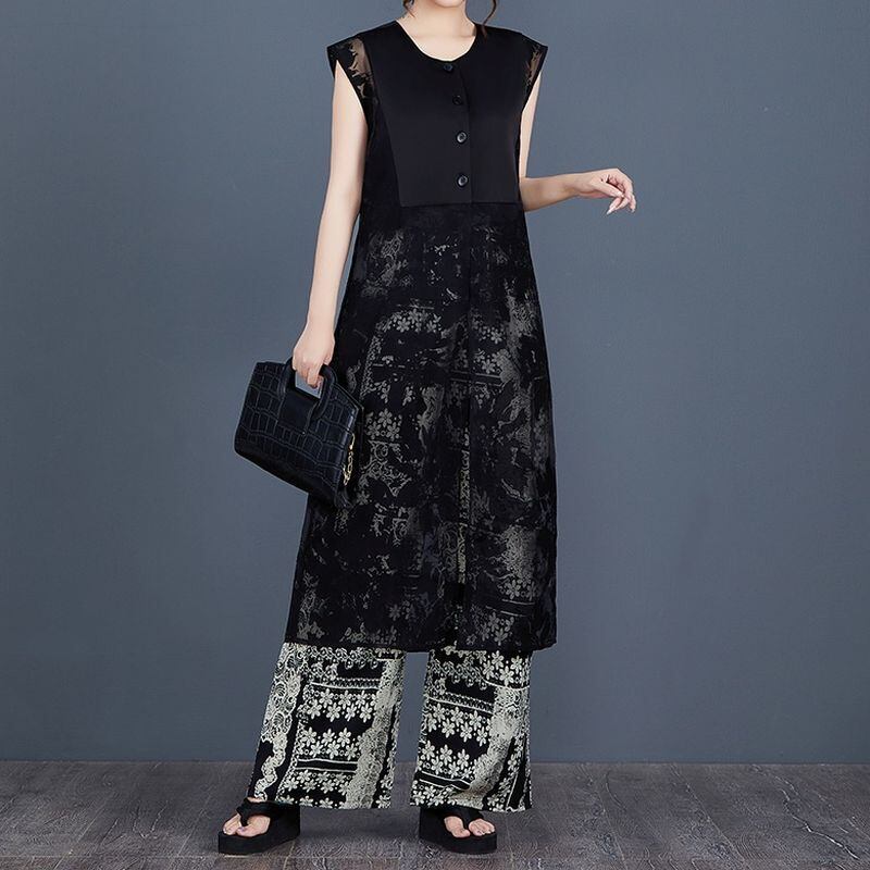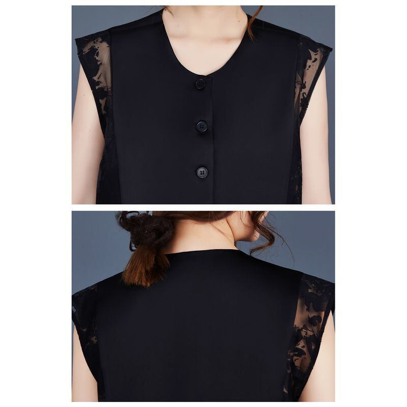 すっきりとしたストレートシルエットに、ソリッドと透かし模様の切り替えが施され、視覚的にも軽やかな印象を与えます。
