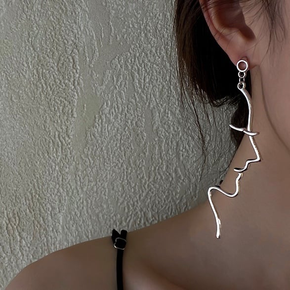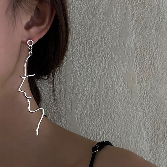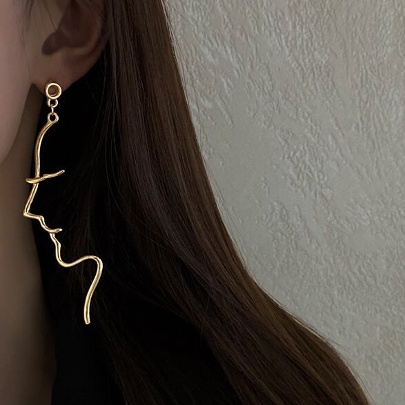 ワイヤーで描かれた横顔モチーフが印象的な、アートピースのようなイヤリング。