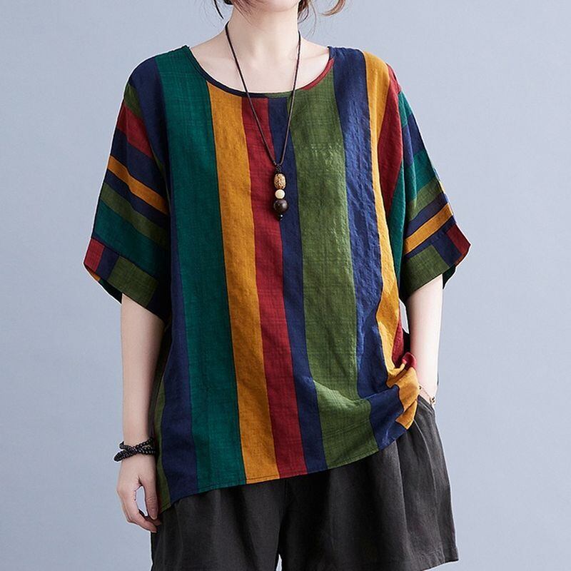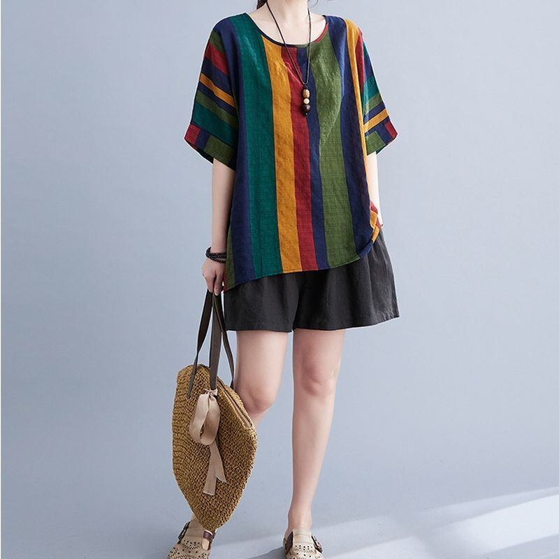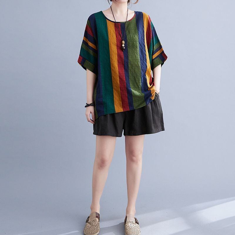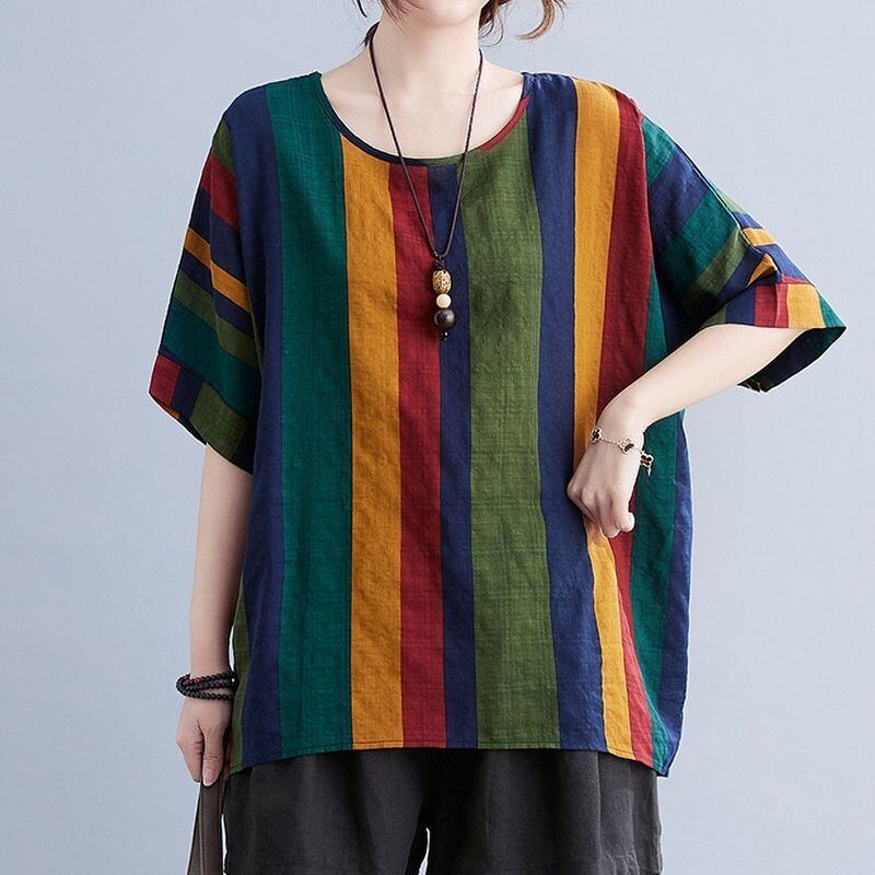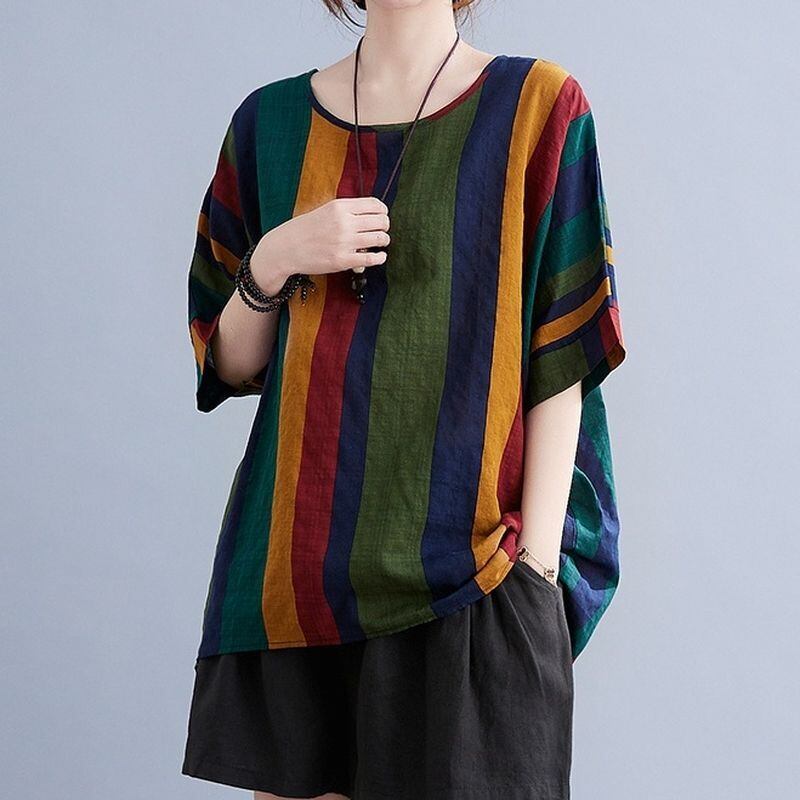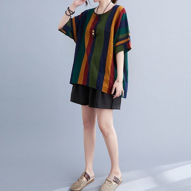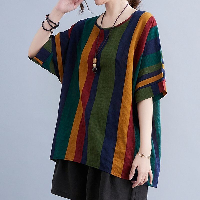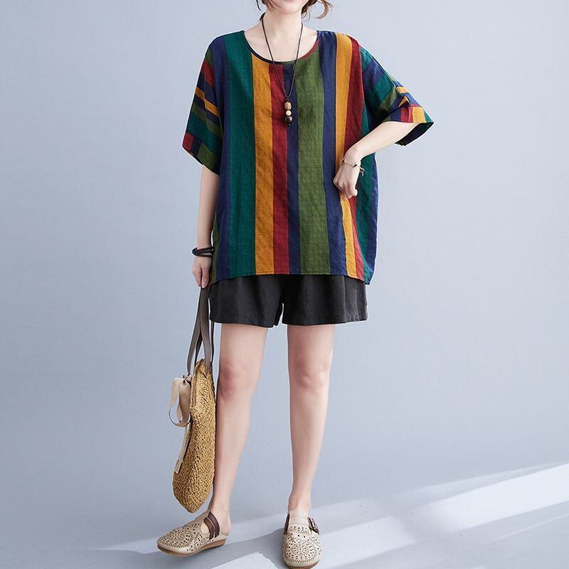 マルチ配色 ストライプ柄 Tシャツ 30224