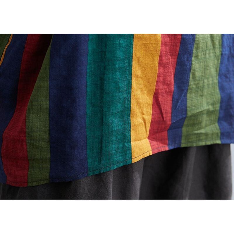 大胆なマルチカラーの縦ストライプが目を引く主役トップス。
