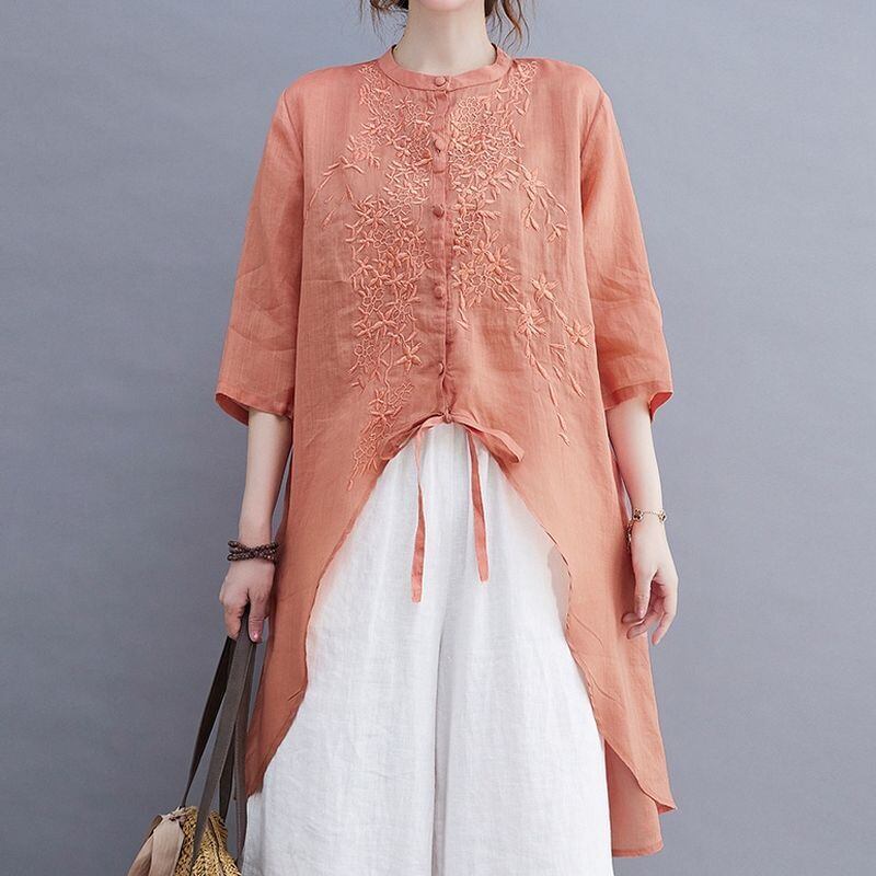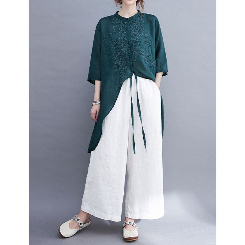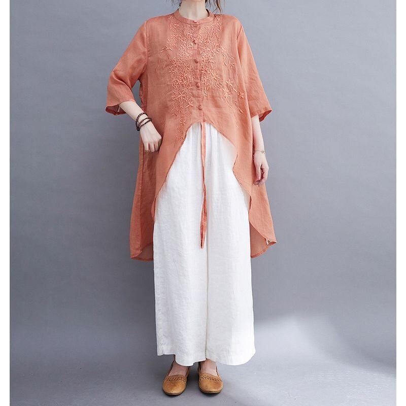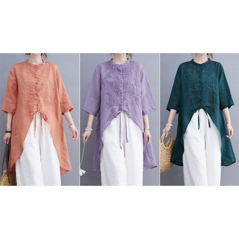 刺繍入り アシンメトリー チュニックシャツ 30228
