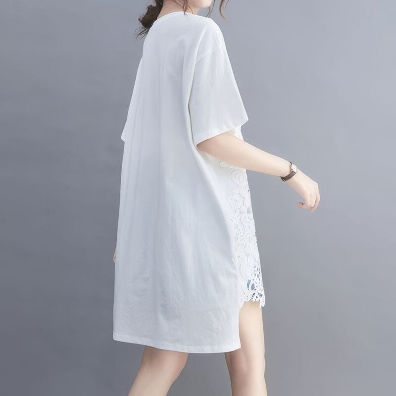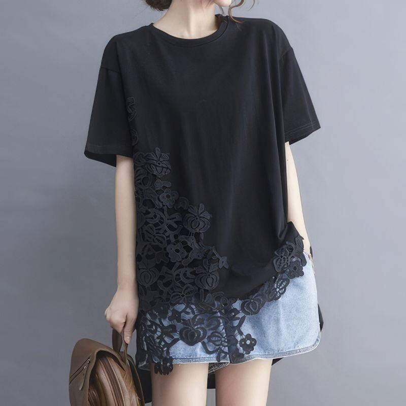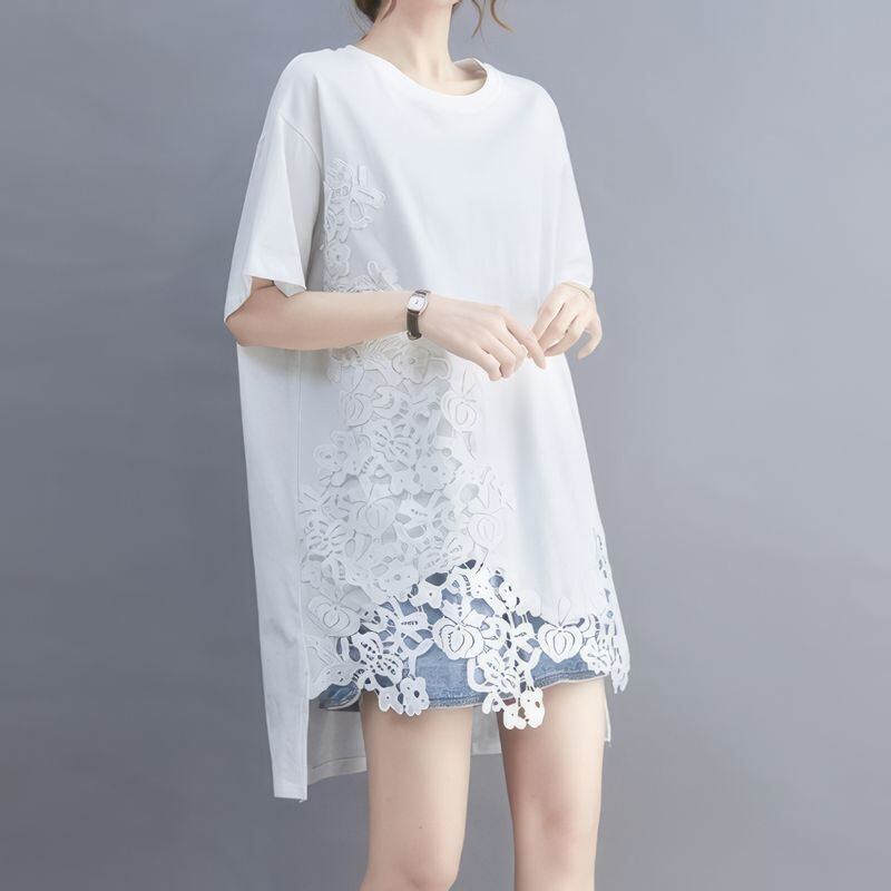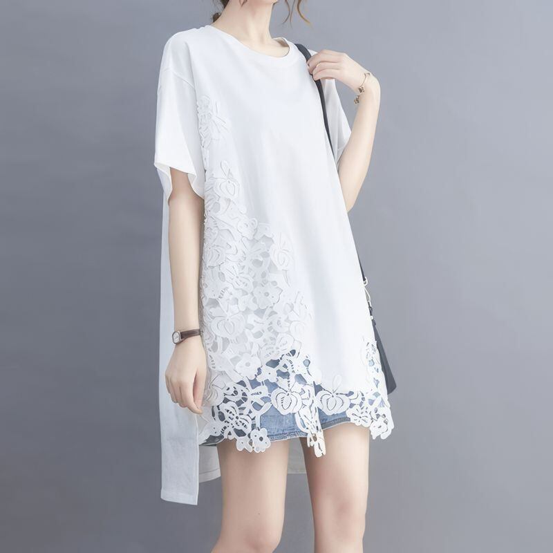 裾のアシンメトリーな透け感が、軽やかなレイヤードスタイルを演出。