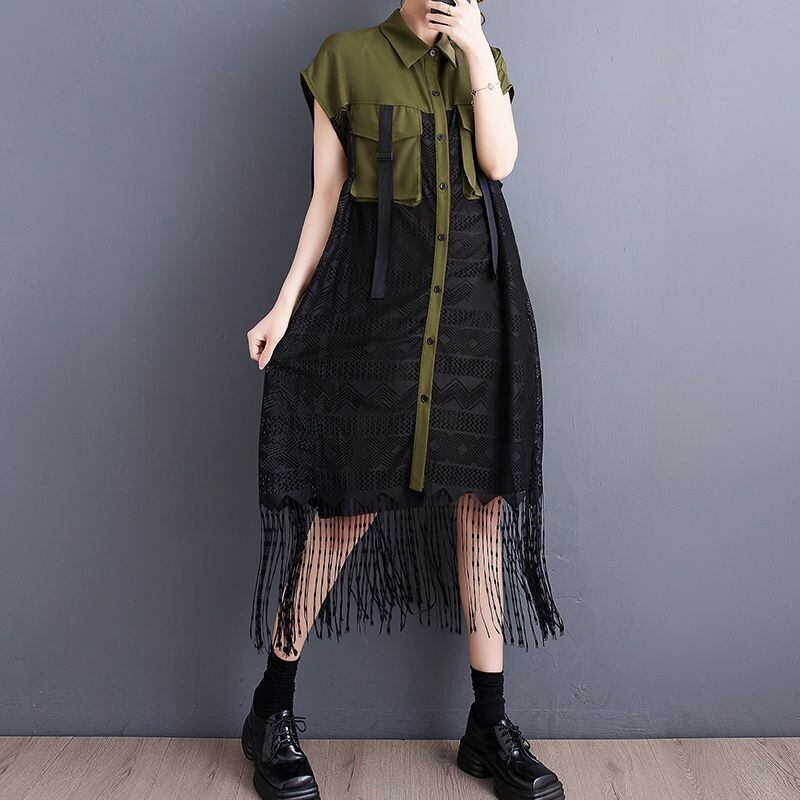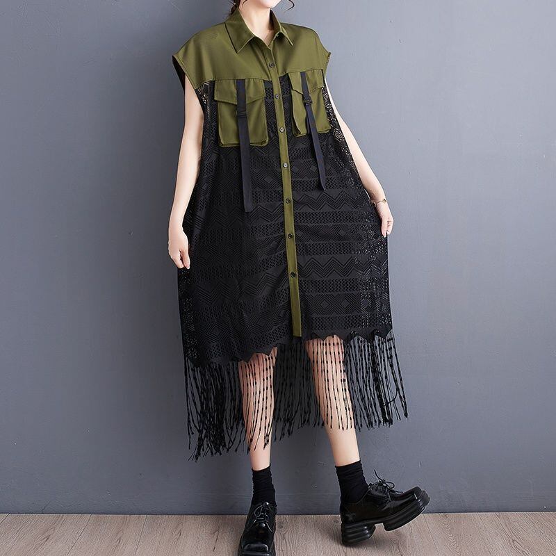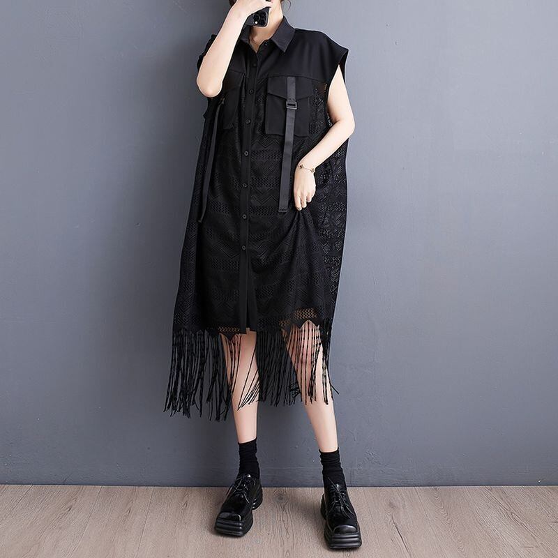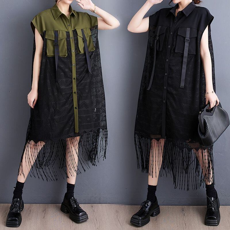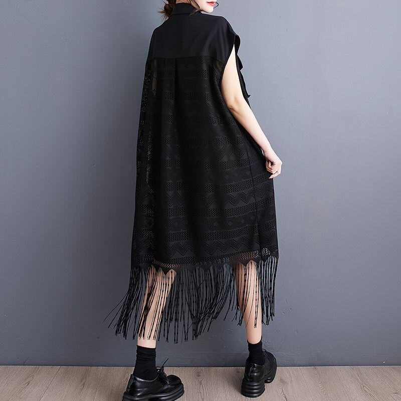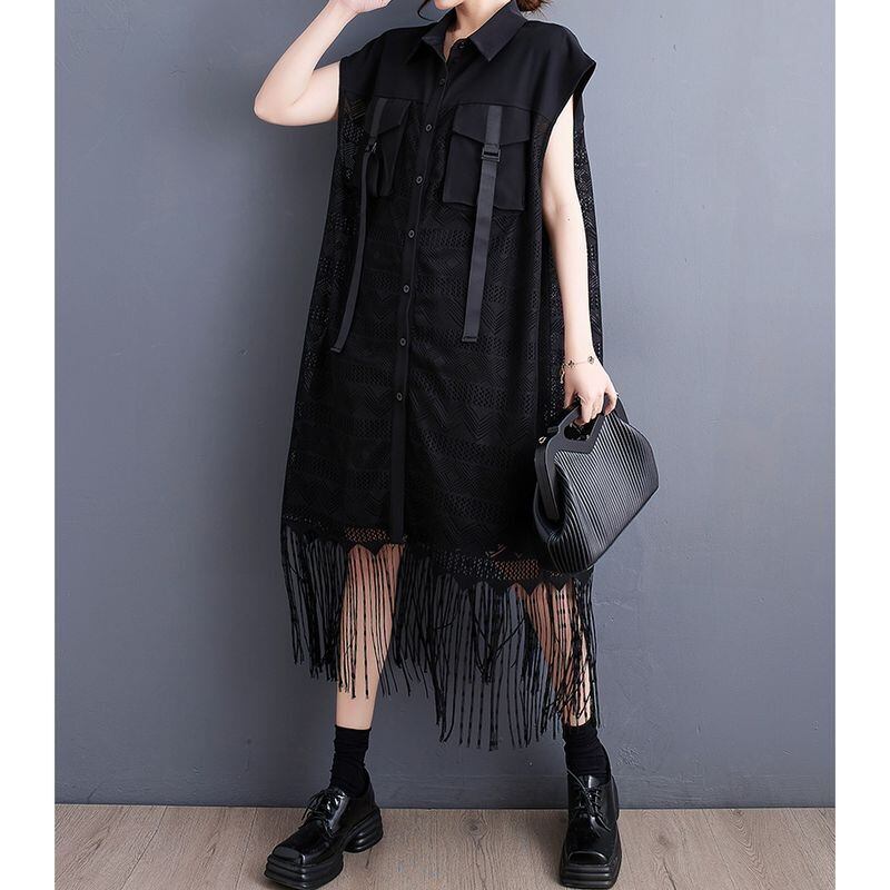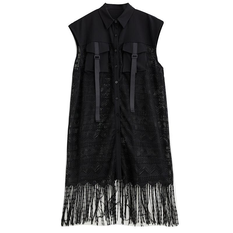 フリンジヘム シアー ロングベスト 30227