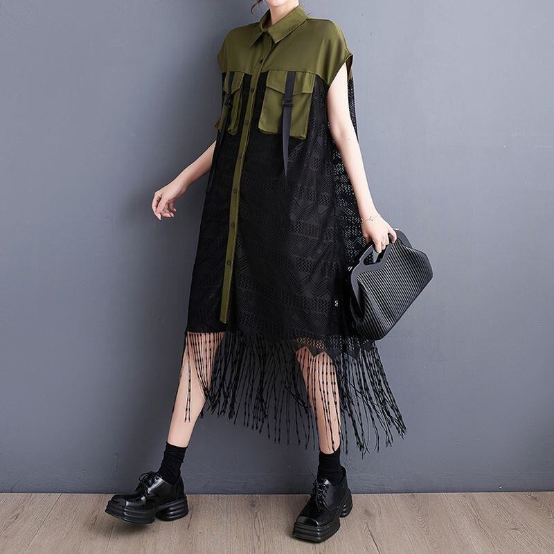 ミリタリーディテールに、シアーな素材感とフリンジを融合した一着。